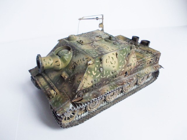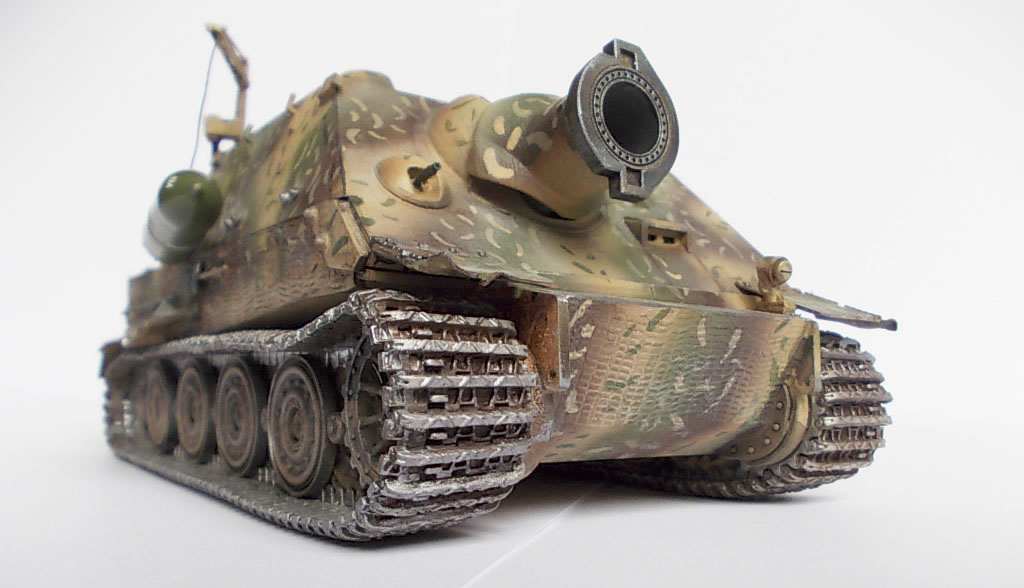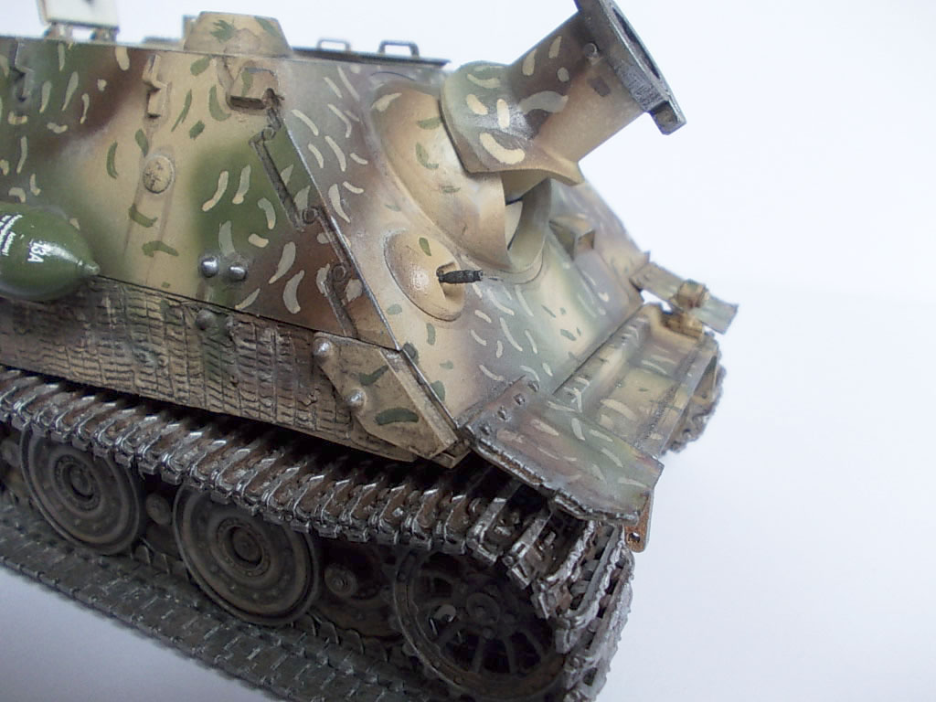 вот сначала начал было совсем нравиться, а потом мне стало казаться , что недостаточно аккуратно автор отнёсся к работе: снаряды реактивные - а морда у трактора чистейшая никакой копоти, циммерит уж извините - грубый и толстенный да и непонятно что он делает под боковыми полками... значит его наносили после обрыва части полок? (но немец был мазохист и заодно залез под неоторваные и там намазал) значит и перекрашивали в полевых... почему люки то белые (да встречались но ооооочень редко) а уж у машины крашеной в полевых 100% былибы освежены в основной дункель гельб...
