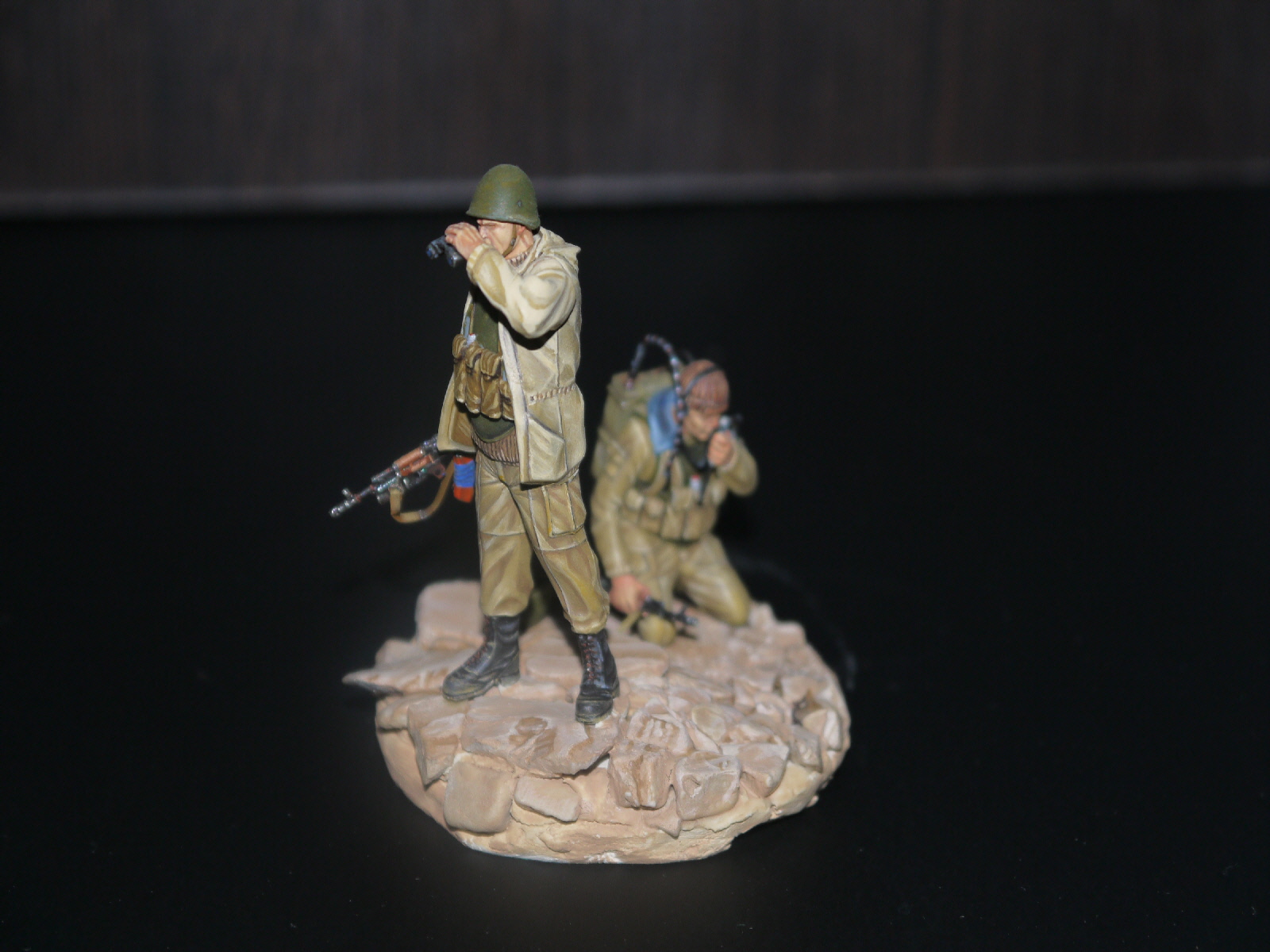 Всем пламенный привет!Представляю очередную миниатюрку из набора от"Звезда""Десантники в Афганестане".Краска акрил от "Звезда",из дополнений к моделям:ремни втоматные и жгут на прикладах выполнены из сигаретной фольги...
