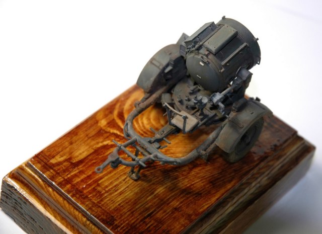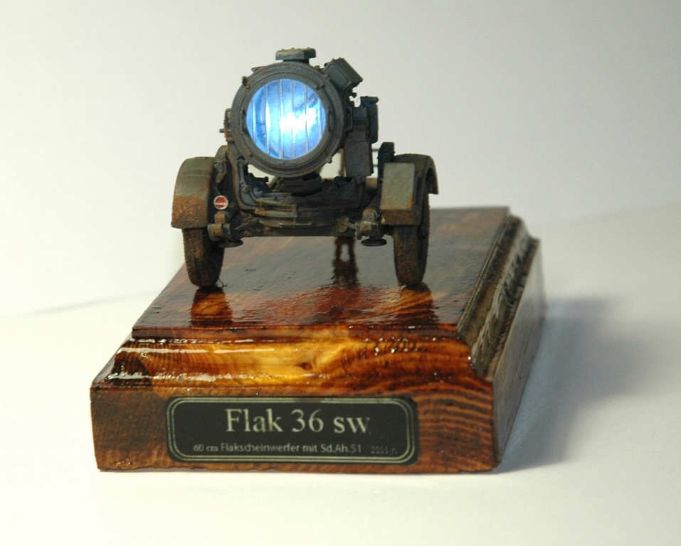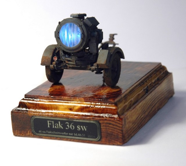 Модель и основа хороши,но по отдельности.Я думаю интереснее смотрелось с эмитацией грунта или чистый прожекторр без ржавчены и грязи.Идея со светодиодом очень понравилась.