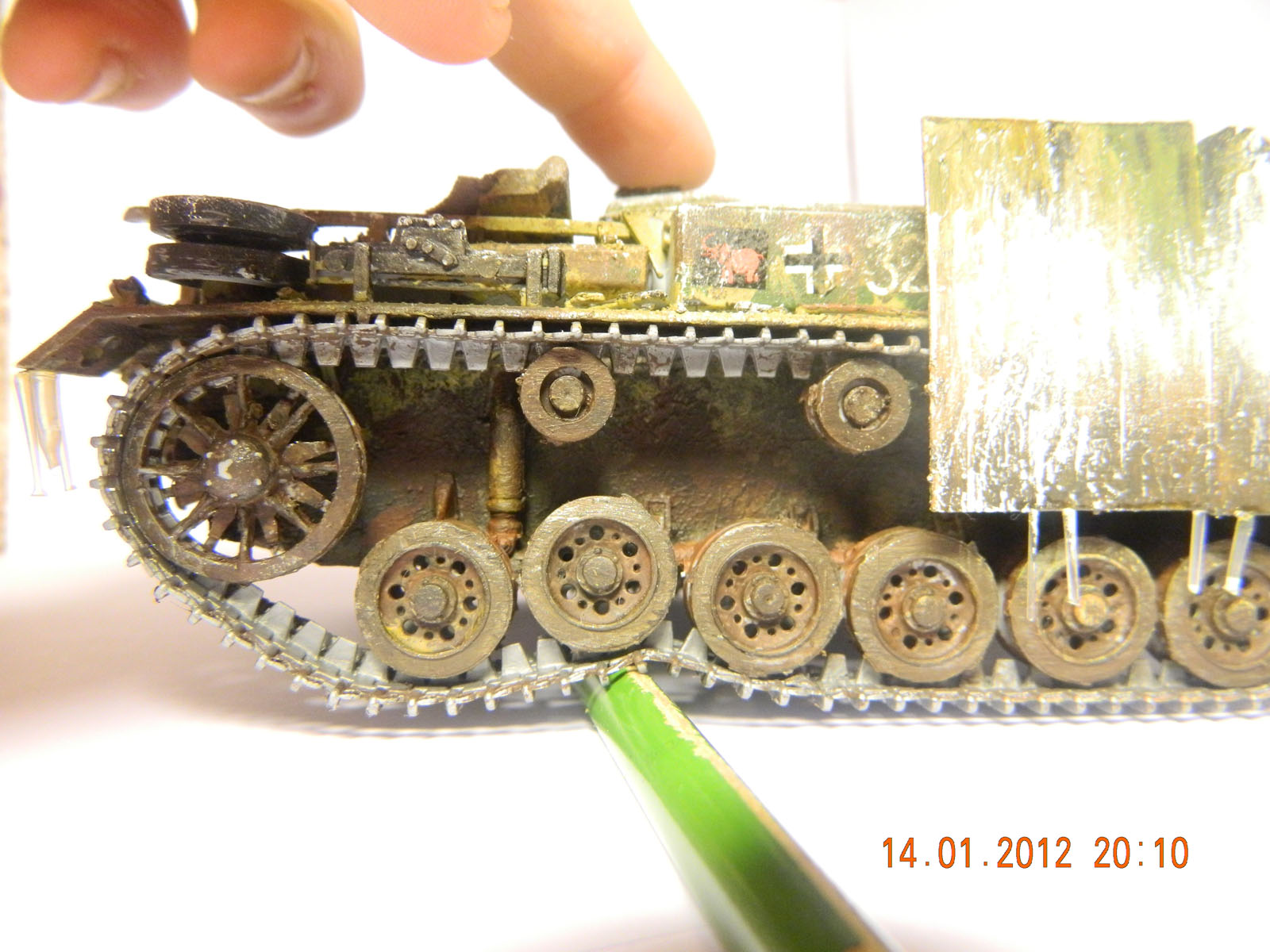 *У меня другой сюжет-немцы решили сделать ремонт в боксе/может,к приезду Гудериана решили "прогнуться"/,потолки побелить-а самоходку выкатить забыли...А тут ещё морозы ударили-вообщем,полная****Завидую Егору/12 лет/-сколько моделей ещё впереди...