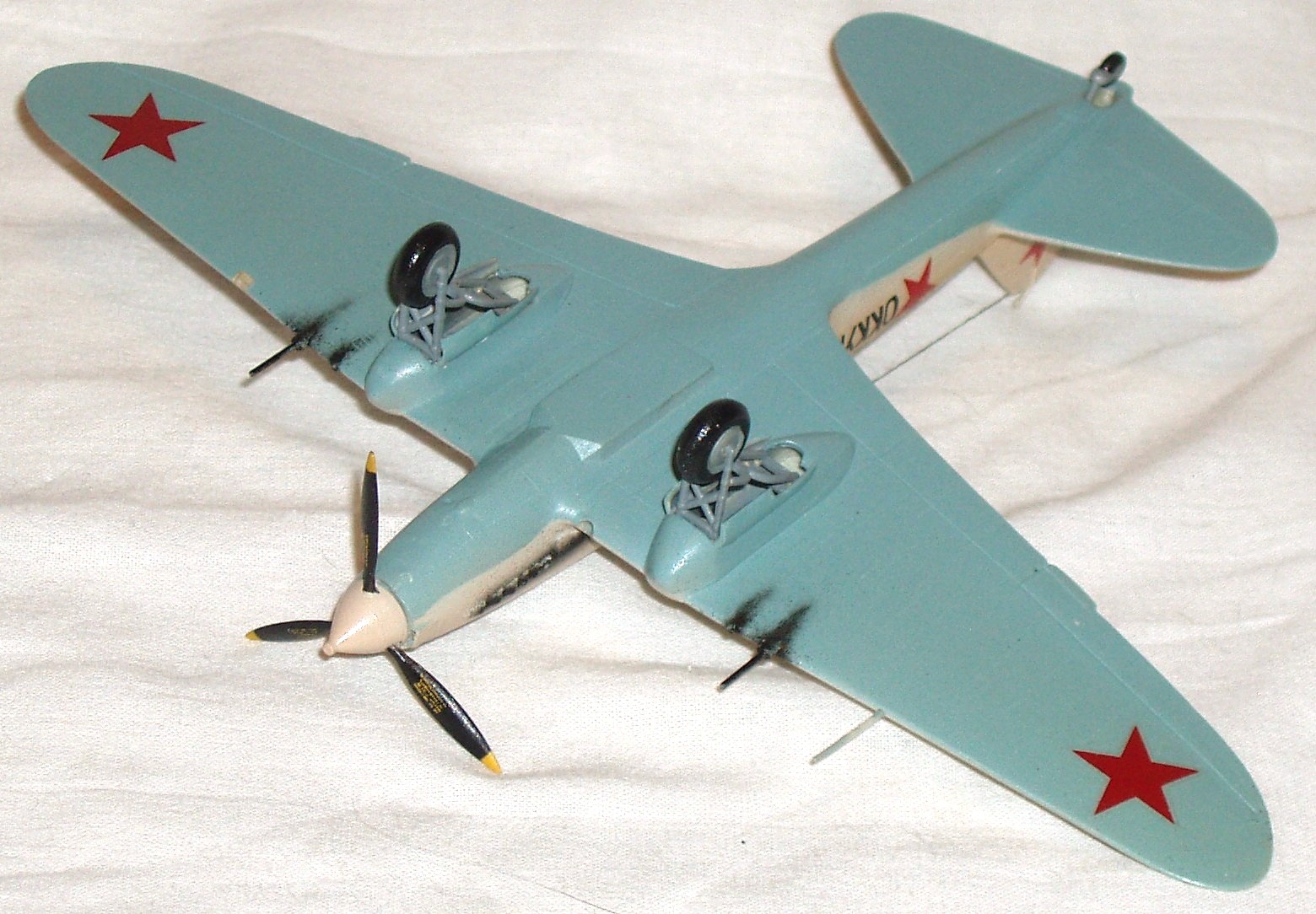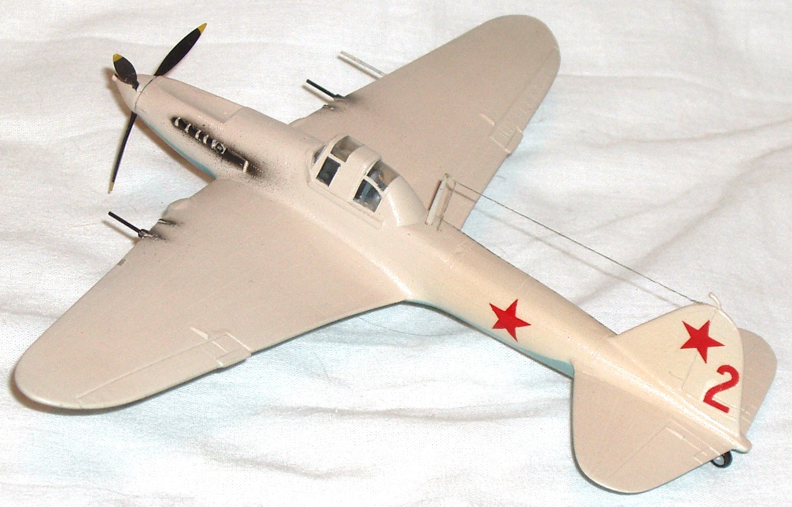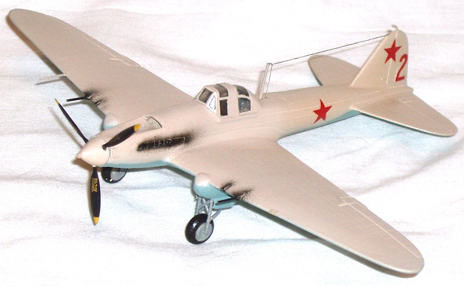 От себя : нанесена клёпка ( ранние Ил-ы были цельнометаллические) ,пушки-иглы, антенна-крашеная нить.