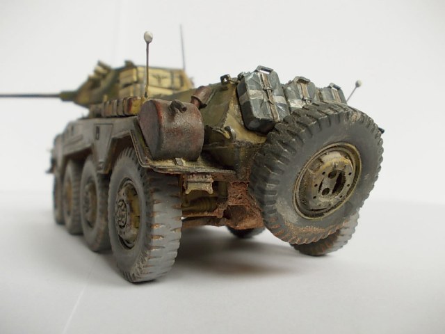 Небольшие доработки в виде проводки к фарам и гранатометам,габариты из струны,триплексы из блестящей жести,создал шероховатость маски пушки,довесил канистры сзади,немного рассверлил пулемет и выхлопные трубы.
