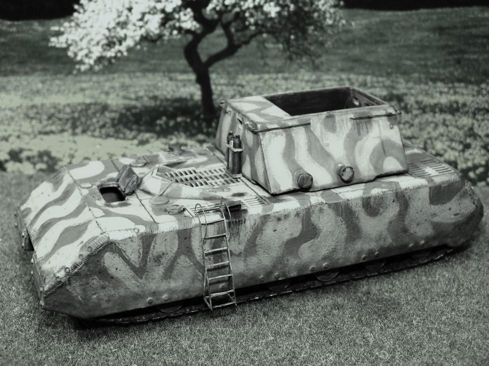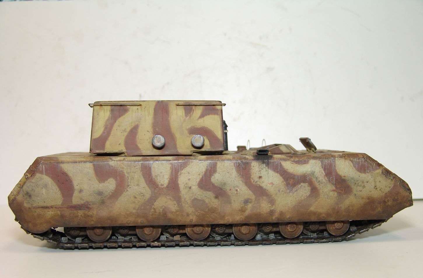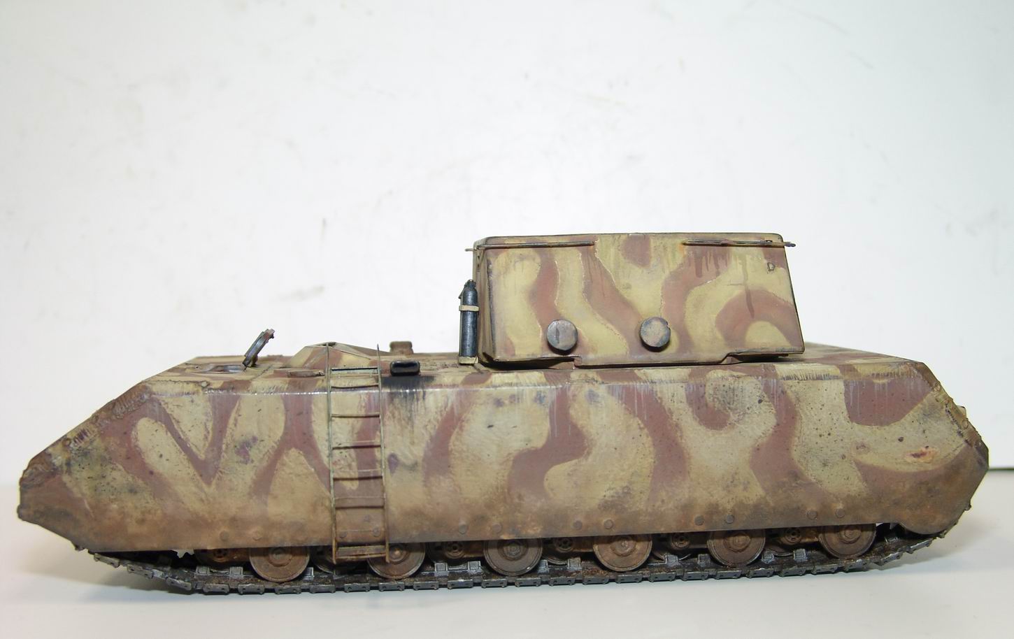 Выношу на обсуждение модель танка Маус V1. Такн имел только корпус и балластную башню. Исходную драгоновскую модель пришлось немного попилить для сходства её с оригинальной машиной.