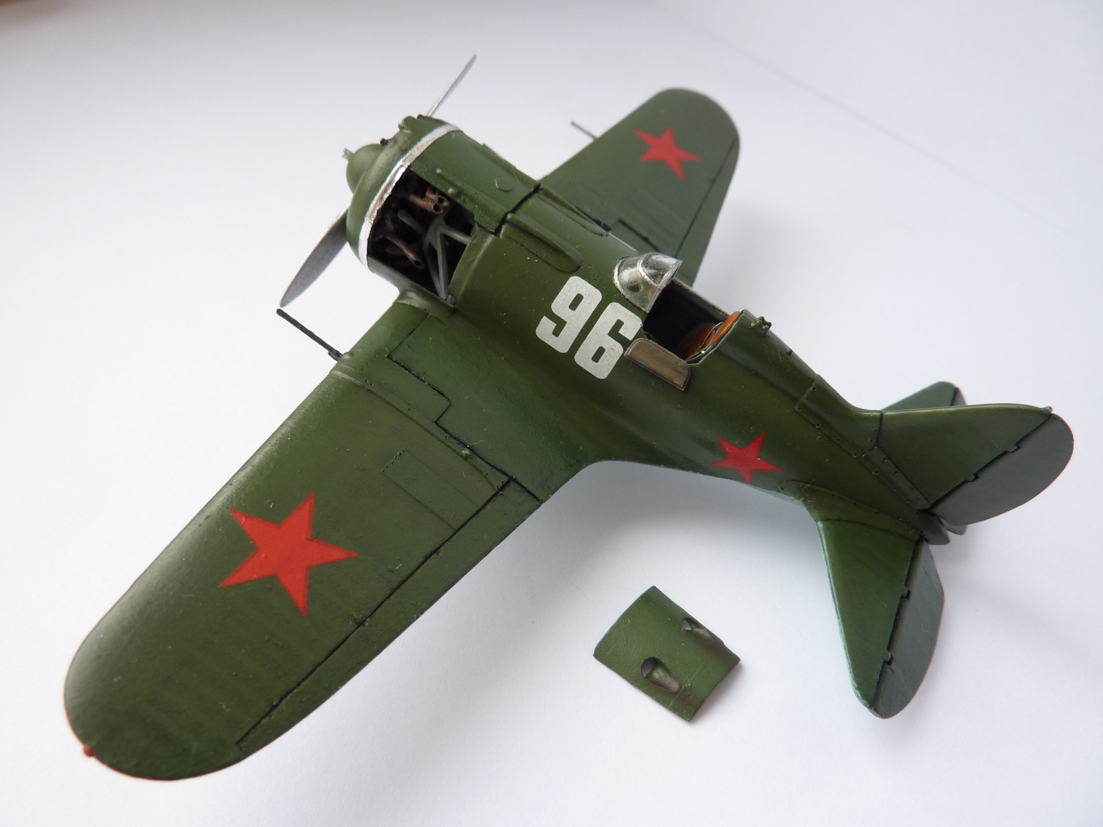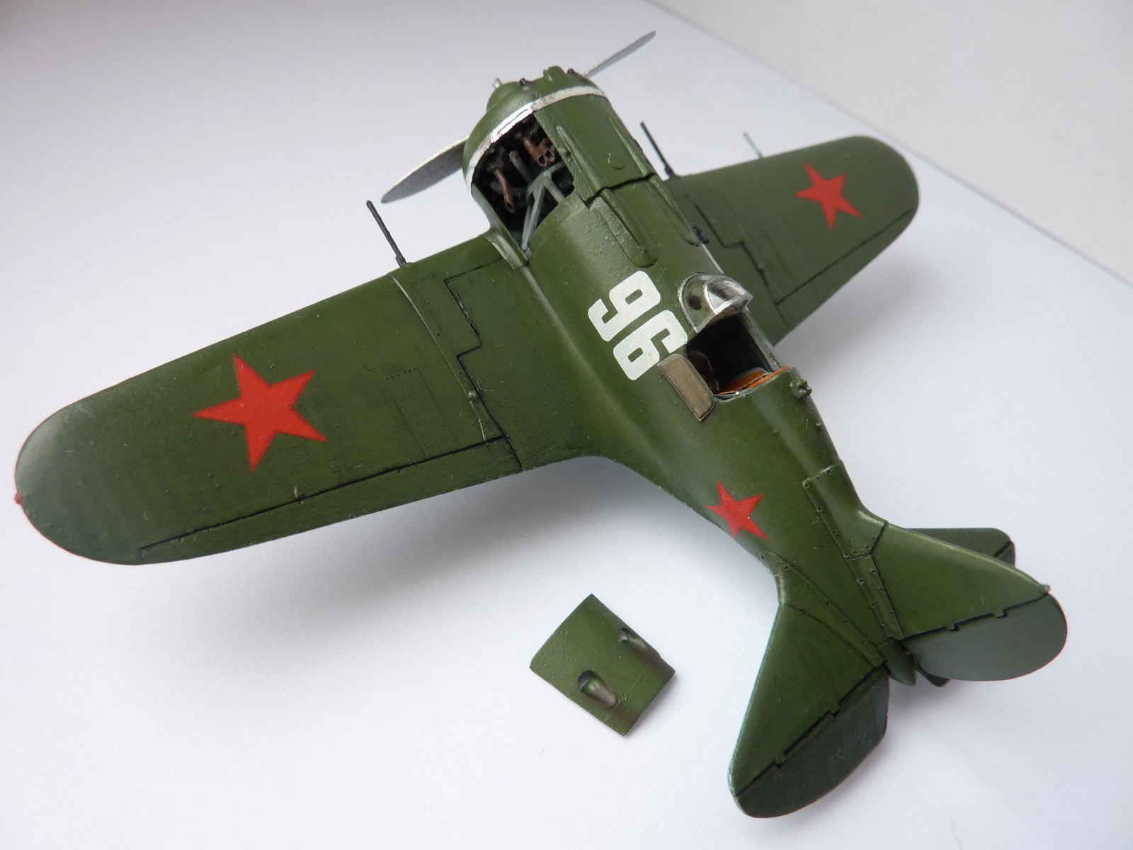 Здравствуйте коллеги! К вашему вниманию очередная модель И-16 тип 28, сто пятьдесят восьмая ИАП (истребительный авиационный полк), Ленинградская ПВО, сентябрь 1941. Тема может и заезженная, но мне тоже хотелось сделать с открытым мотором. В помощь использовал фототравление фирмы АСЕ, из набора не использовал только тормозные щитки, так как сделаны не на то место, где должны быть. С фототравлением работал первый раз. Из моих доработок, в нишах стоек шасси прорезал окна и протянул из бантика тросы для уборки шасси, просверлил окошки для освещения бортовой панели. В носовой части просверлил воздухозаборники и вставил пулемёты из игл, пушки на крыльях оставил родные, стяжная лента на капоте из алюминиевой клейкой ленты. В некоторых местах сточил стенки и немного углубил расшивку. При отрезании обтекателей пулемётов на носовой части был утерян один обтекатель, пришлось вырезать новый. Ну и всего по мелочам. Красил губкой и кисточками Эмалевыми красками Revell и Humbrol, пачкал пастелью, в конце покрыта матовым лаком. Общие впечатления про модель, сборка не идеальна но модель интересна, на мотор не хотел налезать капот и на стыках крыла небольшая щель. Удивили декали, хорошо приварились спиртом и не рассыпались. Принимаю любую критику.