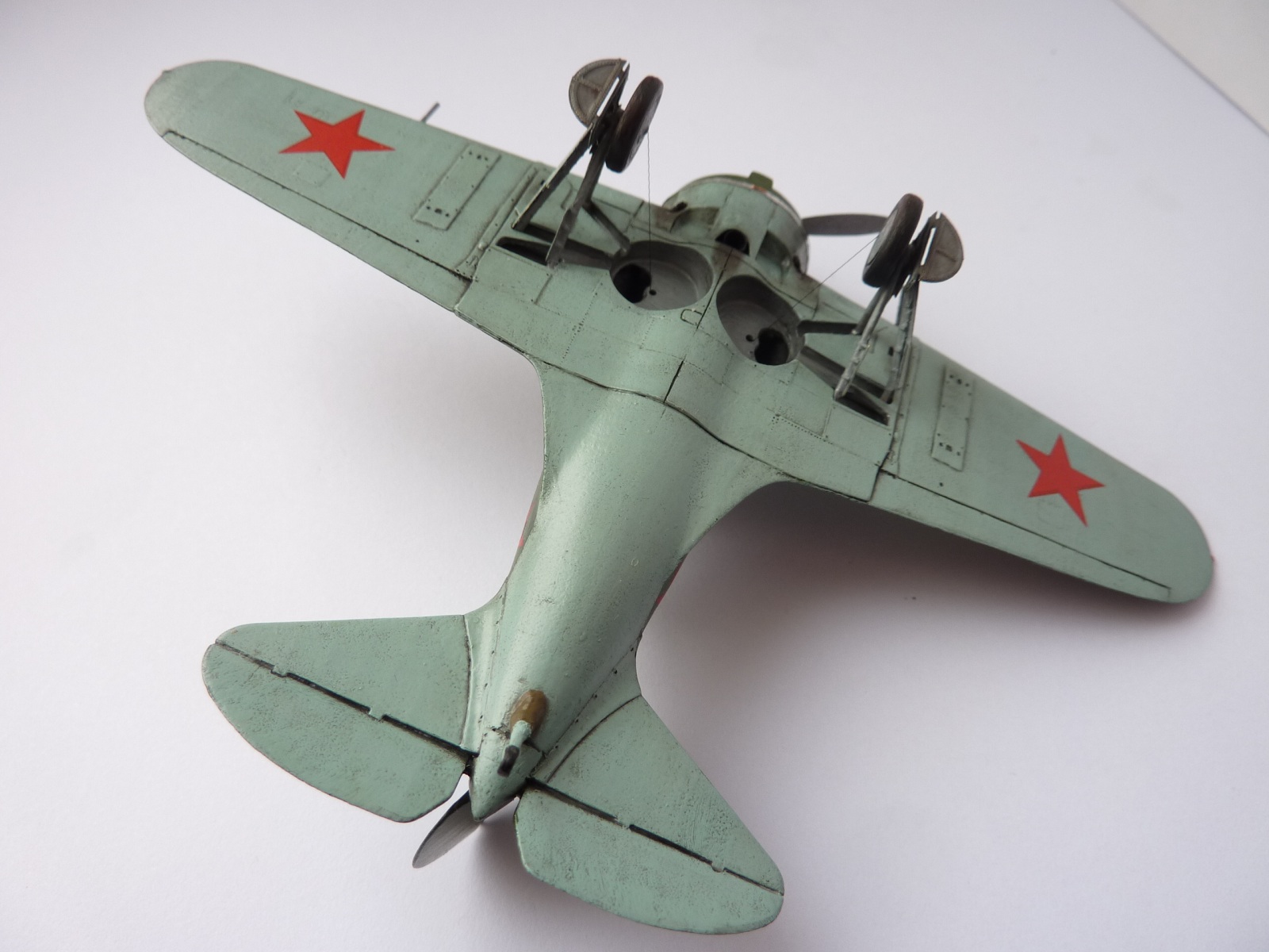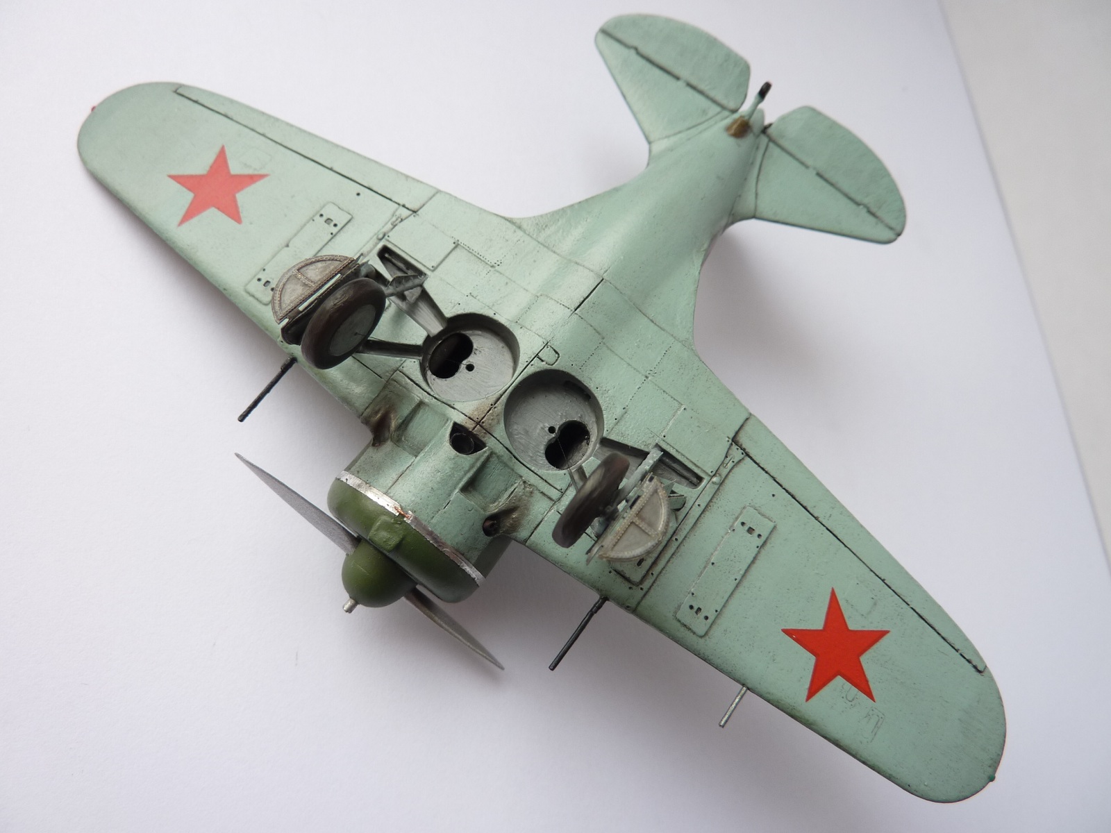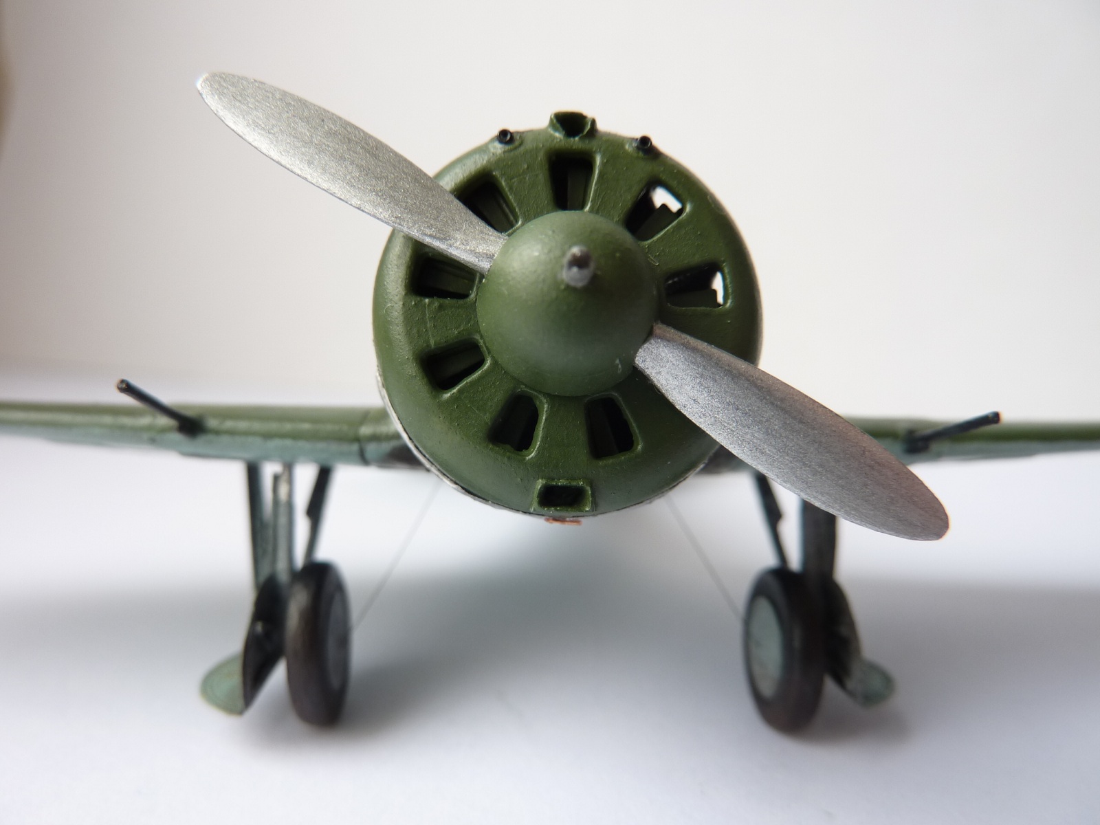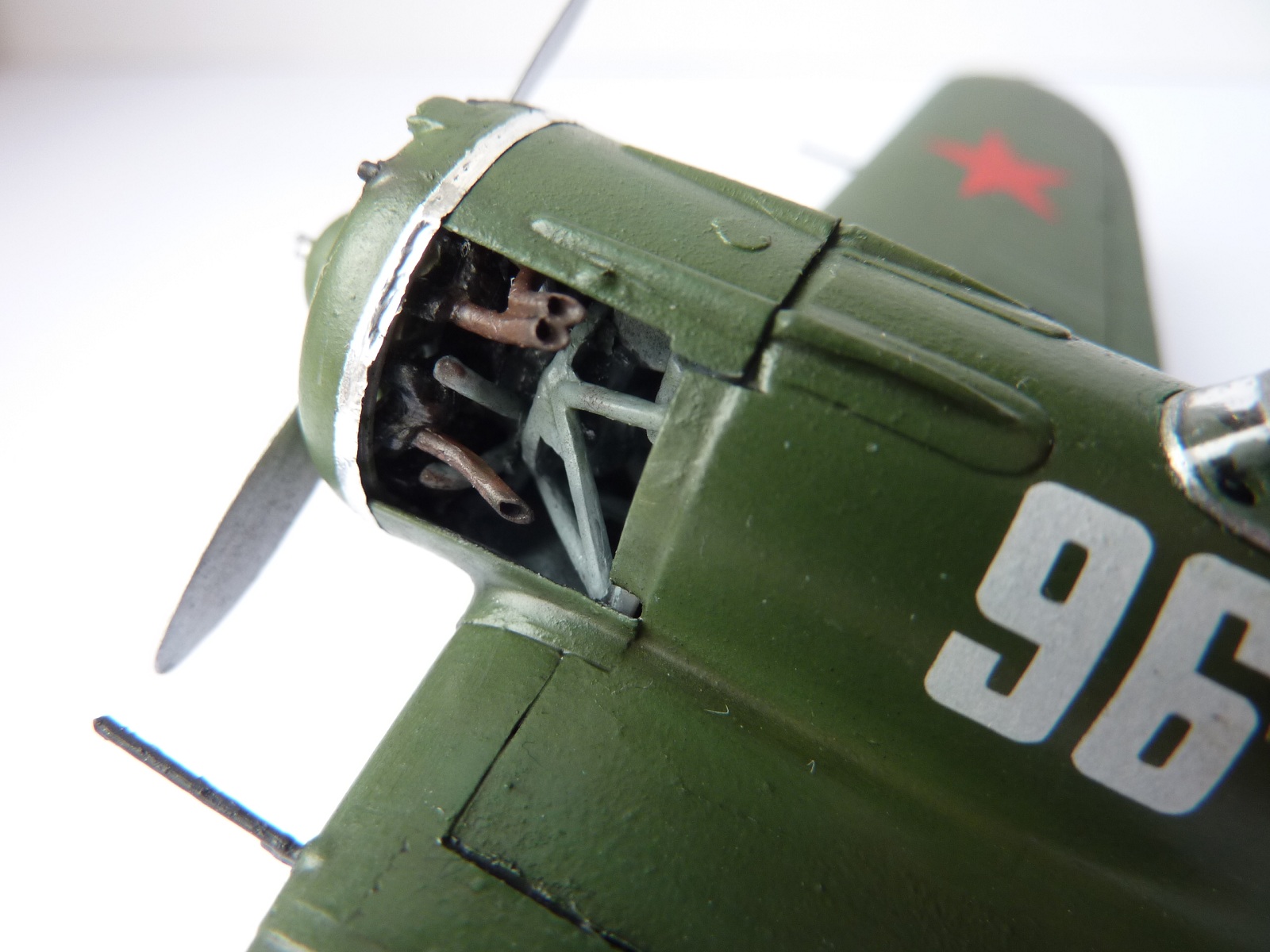 В целом смотрится очень неплохо. Конечно покраска аэрографом была бы лучше. Про недостатки сказали довольно подробно. Винт с обратной стороны, как правило, закрашивался черной краской (от капота и до конца лопастей).