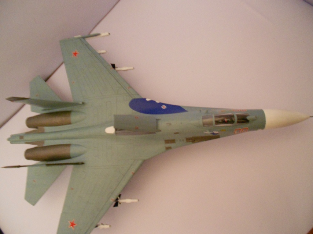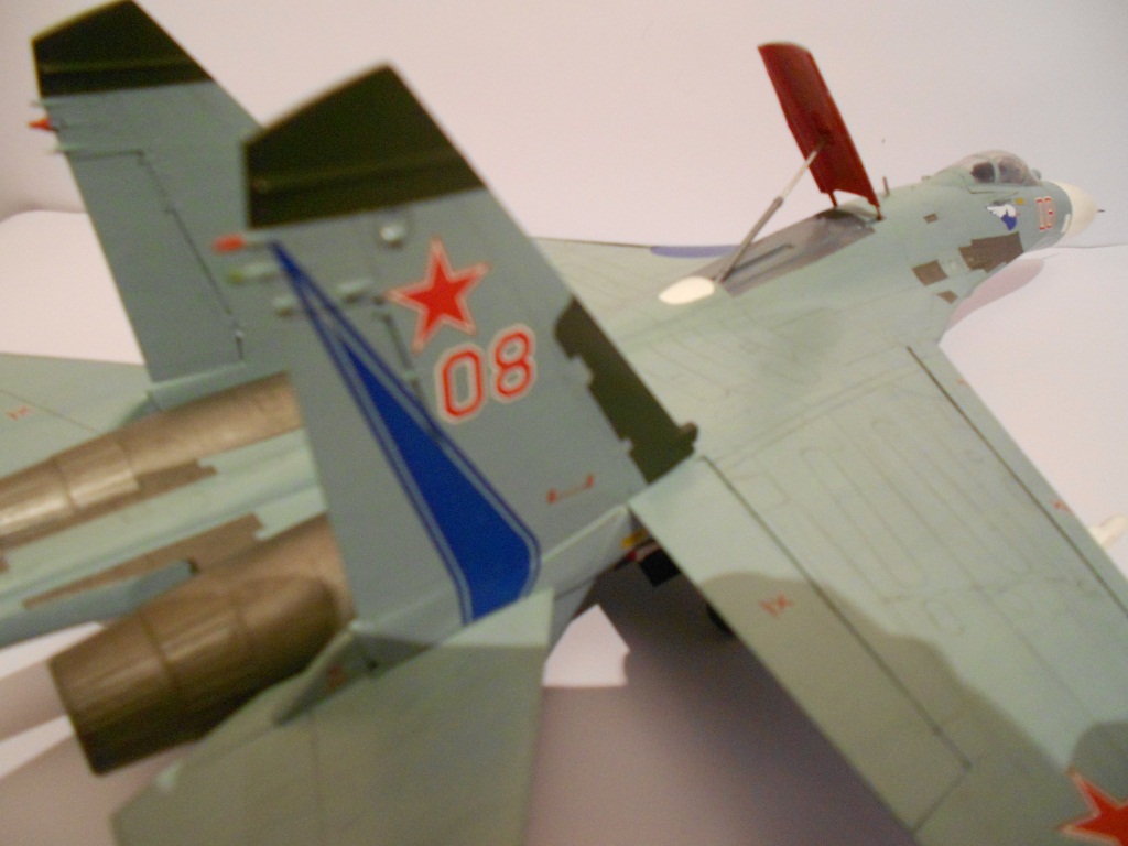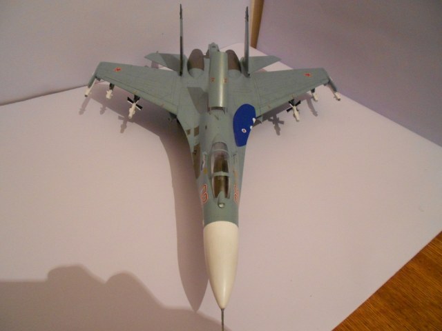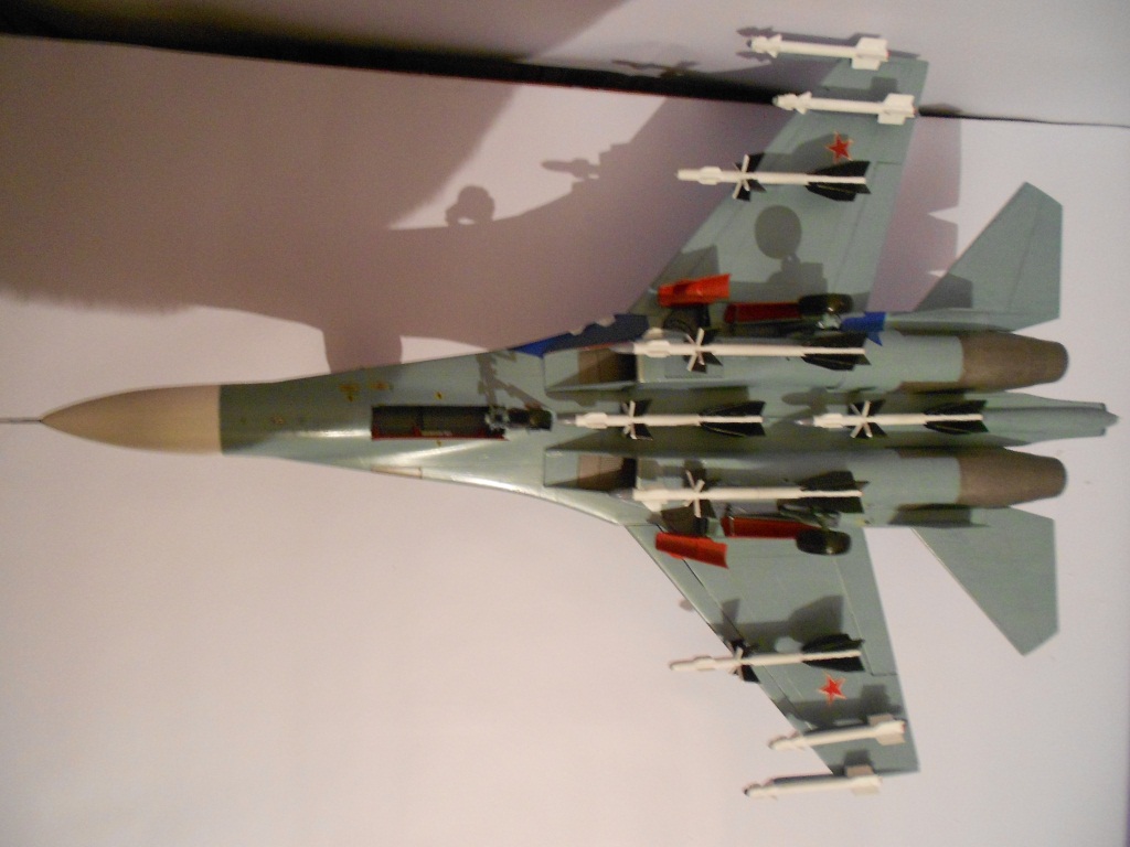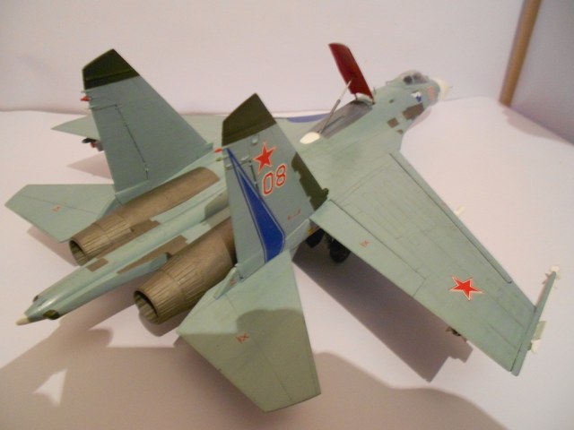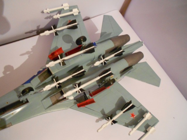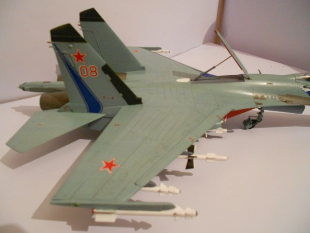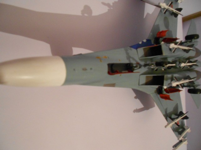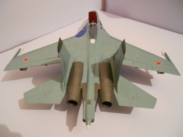 Если честно, без обид - модель выполнена на хреновенький 72й, не больше. Крой враздуды, где остался. Сопла - ужость, жаропрочки - просто куски под краской, смывки нет, только выделение кроя. Объёма не хватает этому Сухарику. А это делается как руками, так и светом. Дерзайте!