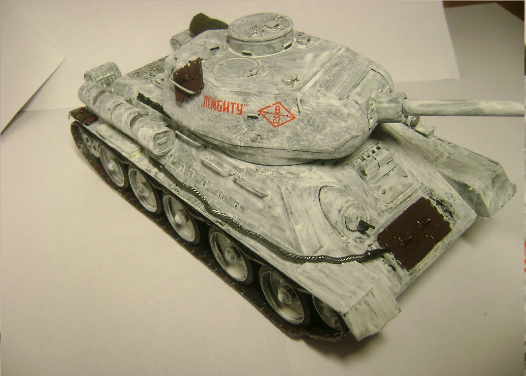 Красил сначала основным "защитным", имитация зимнего камуфляжа - матовая белая акриловая краска разбавленная водой.