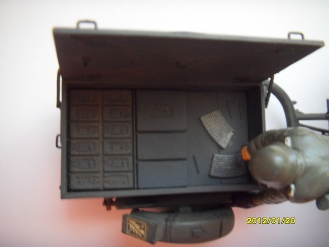 Если зенитка в работе то все борта должны быть откинуты. Аккуратную сборку машины портят фигурки, особенно оператора, рукавицы на руках, неубранные следы от стыка прессформ... Тонировочки маловато, особенно в прицепе с боеприпасами, ощущение что короб монолитный внутри. Как уже сказал Дмитрий, пол зенитки должен быть натерт ну если не до блеска то до грунта точно.