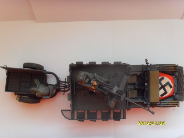 Представляю на вашь суд модель транспртера Sd.Kfz 10/4 с Flak 30, модель почти полностью из коробкииз доработок ремни на винтовки, ремни на каски, ну и флаг, вроде все. Собираемость данной модели на твердую 4 проблемы состыкуемостью пушки, в матчасть не вникал, не судите строго!