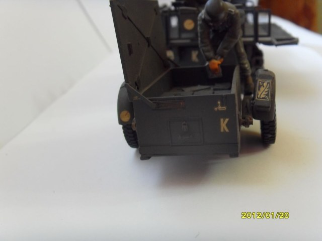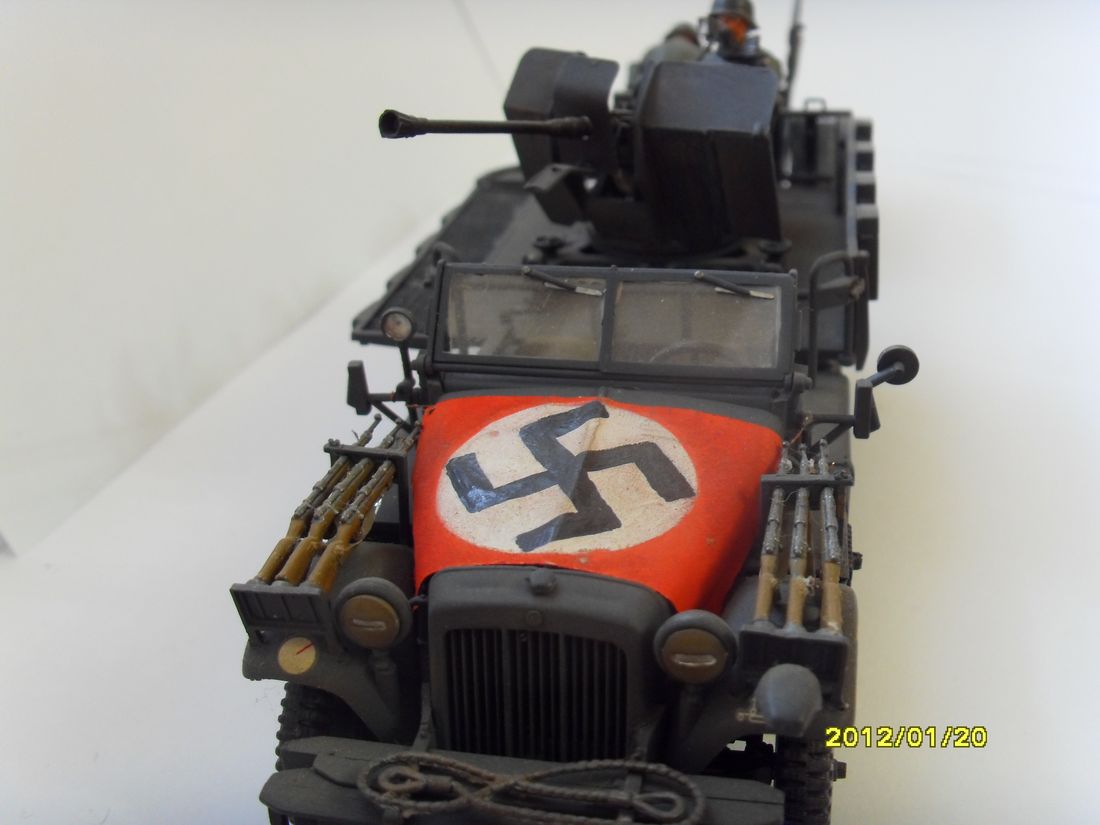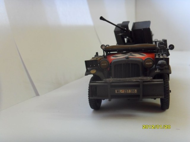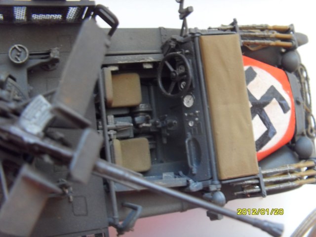 *Модель довольно примитивна/я имею ввиду пластик/на фоне нынешних Драгона и Трумпетера,лет ей уже немало.../Это даже,по моему,не чистый Итал-а наследство от Эски/.Для отработки приёмов подходит вполне-сборка аккуратная,покраска тоже/только оттенков серого маловато.../-на полотнище пару складок не хватает/для реализма/-чересчур"любовно"уложен на капот,зеркала лучше стеклить кружками фольги,металлу добавить вокруг орудия от знаменитых немецких "кованных" сапог...Ну и последнее,что это за значок на правом крыле?****Нормальная машина*Успехов!*