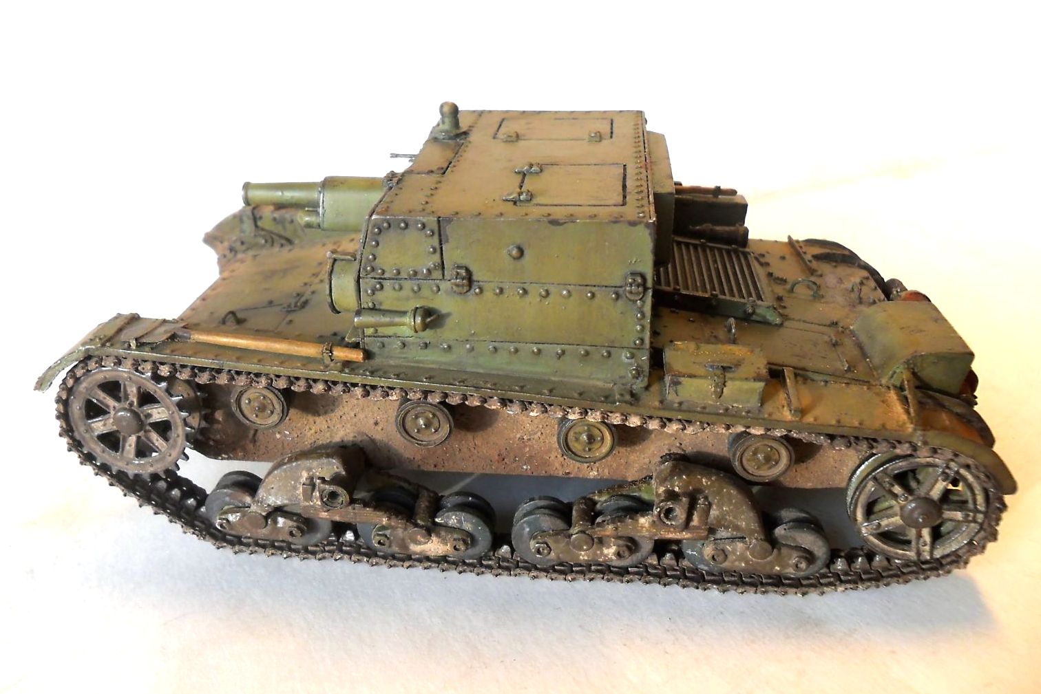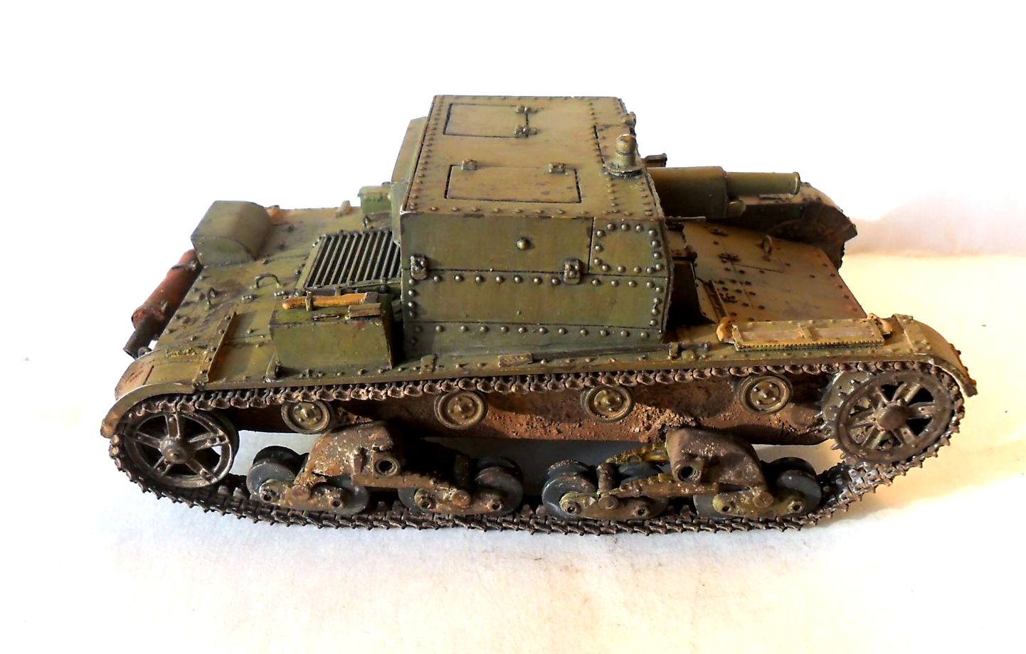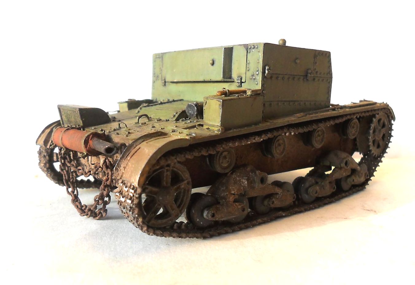 В изготовлении модели участвовали: "звездовский" Т-26, конверсия от "Оружейника", катки и решетка от "Комплекта ЗИП", травление от "Эдуарда", пулемет ДТ и звуковой сигнал от "Модел Пойнта", гусеницы от "Фриула". Также в довольно большом количестве использовались болты и заклепки от "Мастер Клаба", остатки травления и пивжесть, шпаклевка и др. подручные материалы.