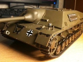 Моя первая модель бронетехники. У сборки большой минус - борта нижней части танка, куда крепятся колеса, были отдельно от днища, из за этого в дальнейшем корма танка получилось не совсем ровной. красил аэрографом краской "tamiya" xf-51. мелкие детали прокрашивал кисточкой, но танку совершенно не хватает реалистичности, прошу ваших советов -) и не судите строго хех.