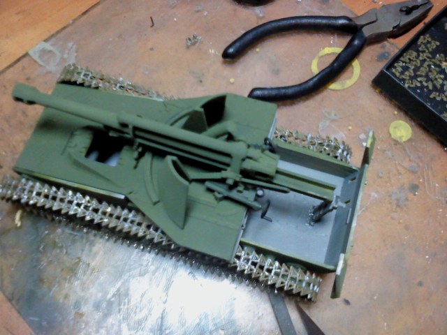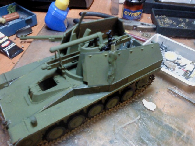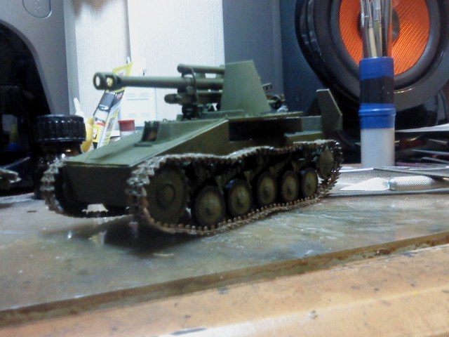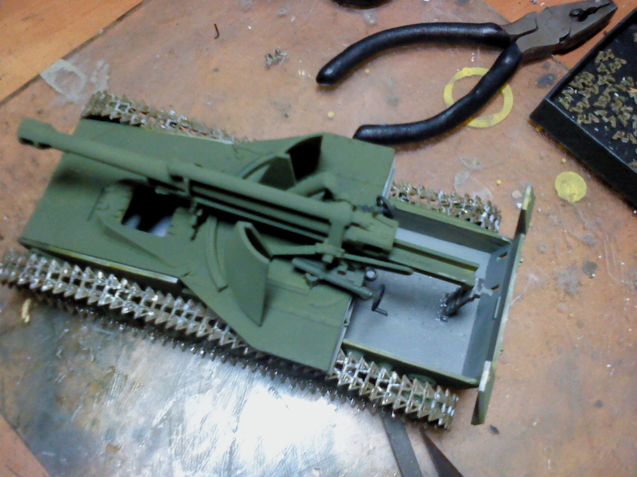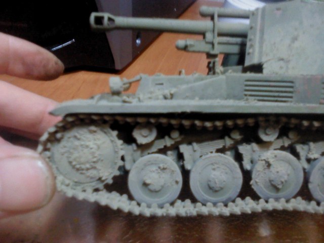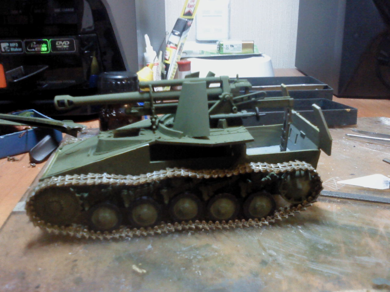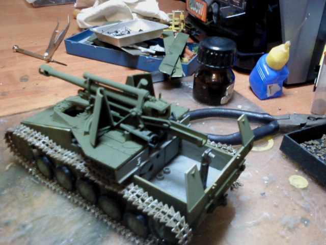 привет друзья и гости процесс сборки насекомого от АРК моделз был довольно сложен так как все выполнено на базе фирмы АЛАН а у них катки не встают в траки, пришлось все подпиливать заново сделать валы крайних опорных катков по обеим бокам, много подпиливать и подгонять но в целом вышло неплохо получил то что хотел
