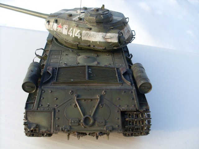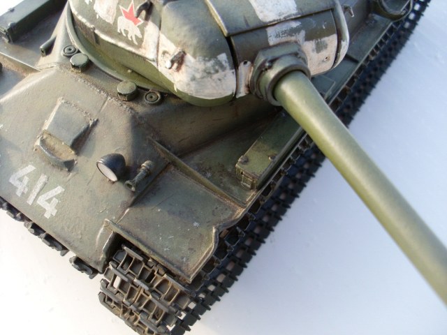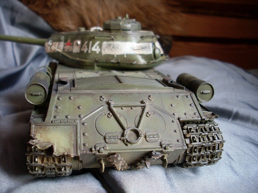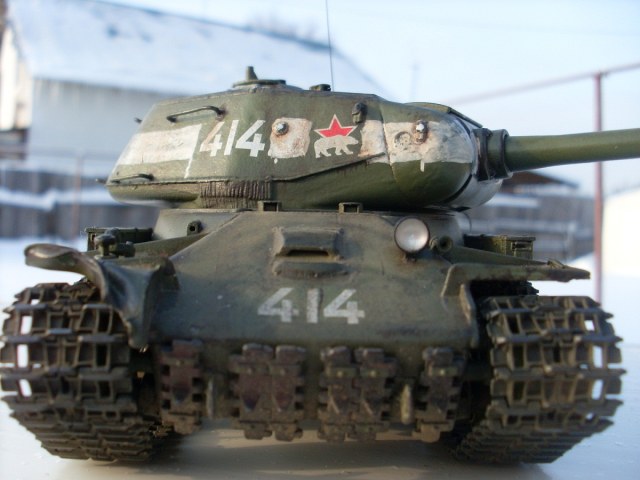 Здравствуйте. Прекрасная модель, глядя на нее сам решил Иосифа собрать. Из мат. части только хотел бы добавить, у ИС-2 гусеницы полностью состояли из одногребневых траков.