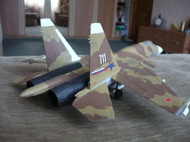 первая модель. красил кистью. Краски звеза до трех слоев налаживал (перед покраской протирал растворителем 646 все части) не знаю в чем дело))? Отлетает. Сколы. Когда собрал - оказались косяки то там не правильно прелеел то там не в ту сторону)