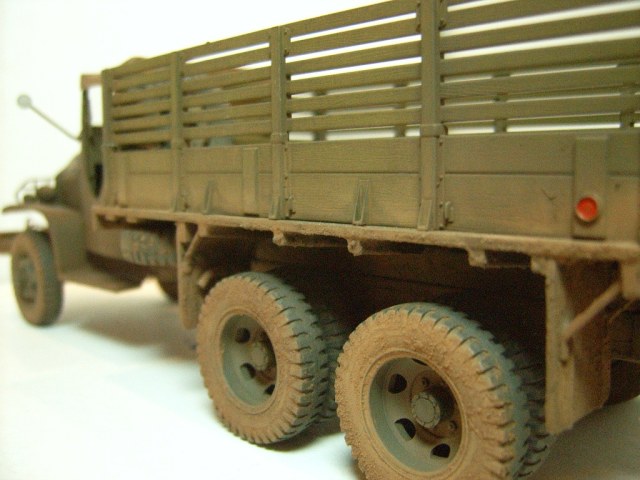 Это сынок CCKW-353 - М35А2, который производился фирмой "Оверленд" (Overland), ставшей в начале ХХ века основой компании "Виллис-Оверленд" (WillysOverland). После войны она вошла в группу "Кайзер Джип" (Kaiser Jeep. Вот тогда янки и поняли, что бампер под лебедку у них неправильно заточен и быстренько исправили.