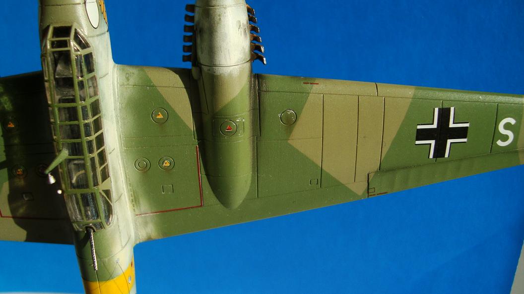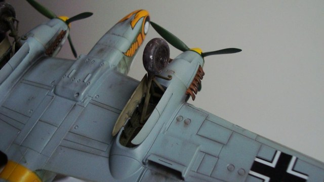 Ещё раз расматривая фото обратил внимание на мотогондолы. Кажется ,что они как будто от другого набора. Сильно глаз режет ступенька,выхода радиатора как такового нет. Бюджетный набор,что говорить.Но всё же считаю надо было этот недостаток исправить. Обратите на это внимание,кто будет строить. Вот,что значит обсуждать модель не зная прототипа. На свастику обратили внимание,а тут такое.