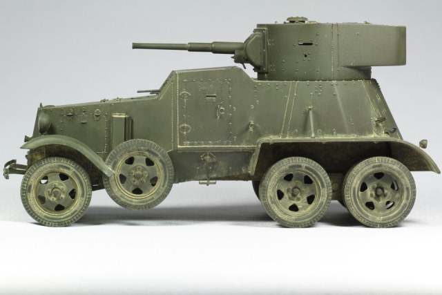 Отличный бронеавтомобиль. По-моему, победа над нашими производителями полная... Правда, по мне бы, можно было смывочку чуток по-контрастнее сделать, хотя если машина на Халхин-Гол, то там песок и пыль - все светлое...