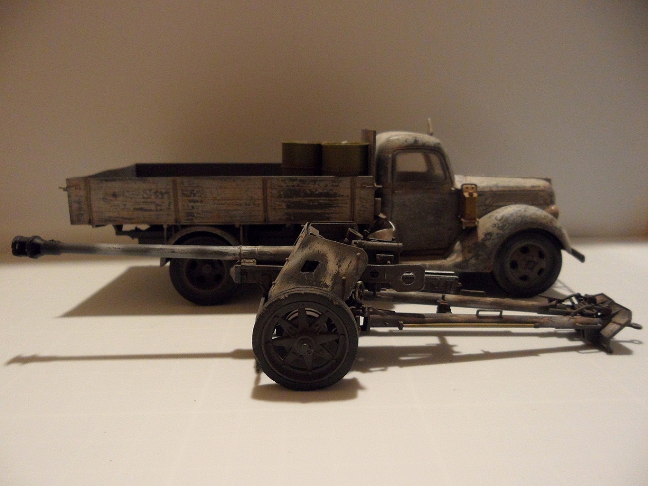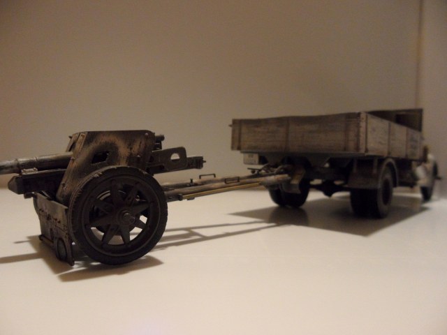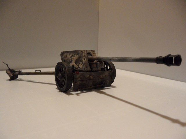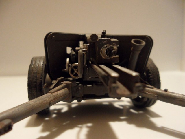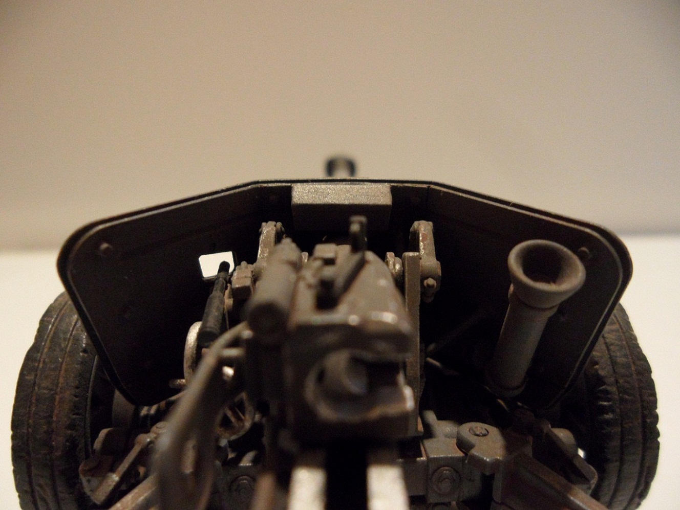 Приветствую! Модель собиралась из коробки. Набор дает травленый бронещит, три варианта по сборке колес и дульного тормоза. Так же даются фигурки солдат, которых собирать пока не умею...))