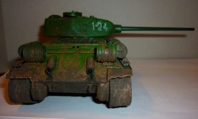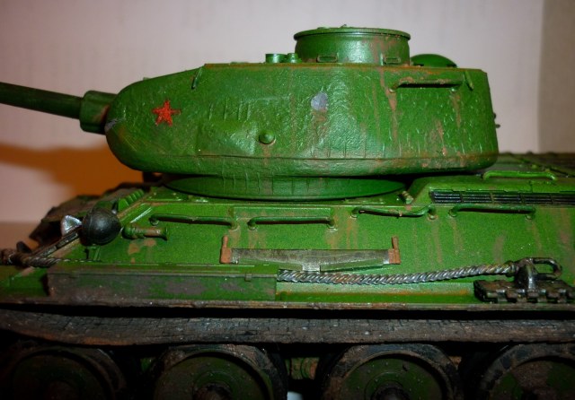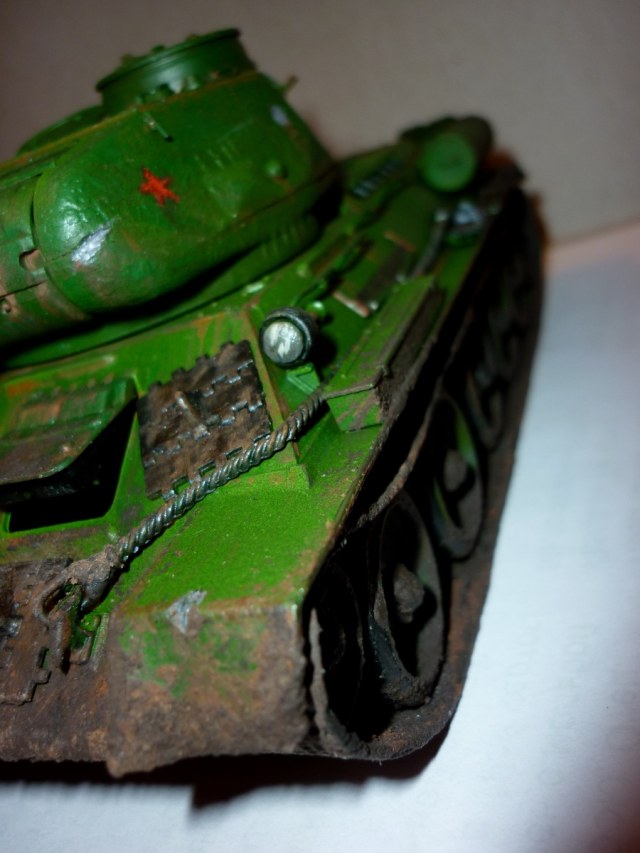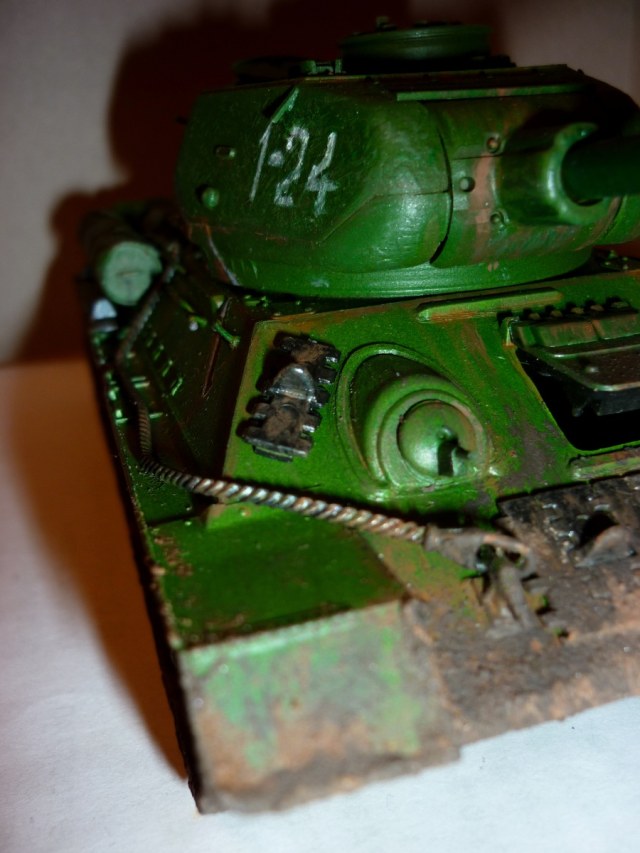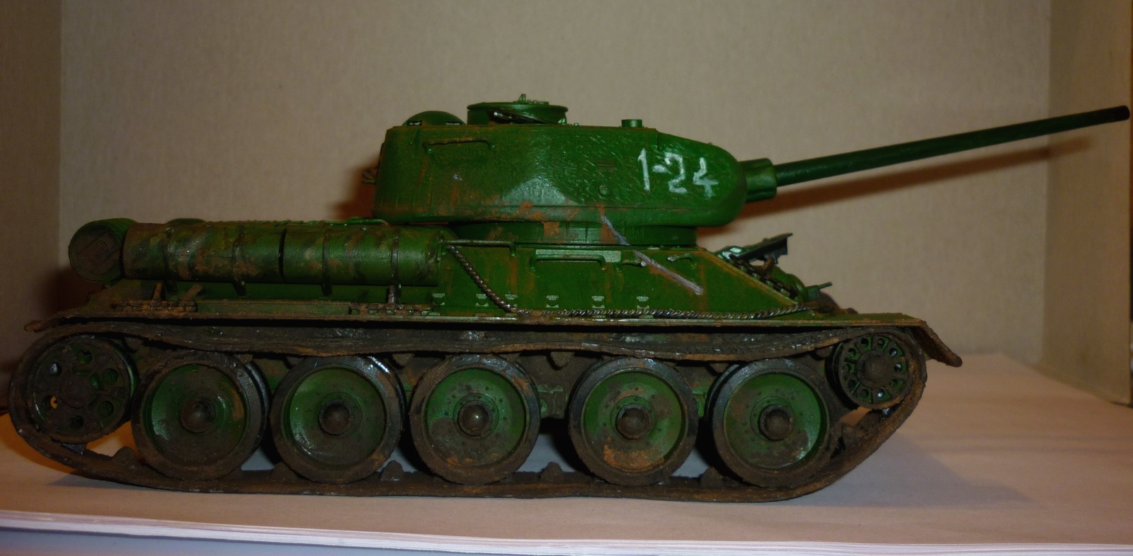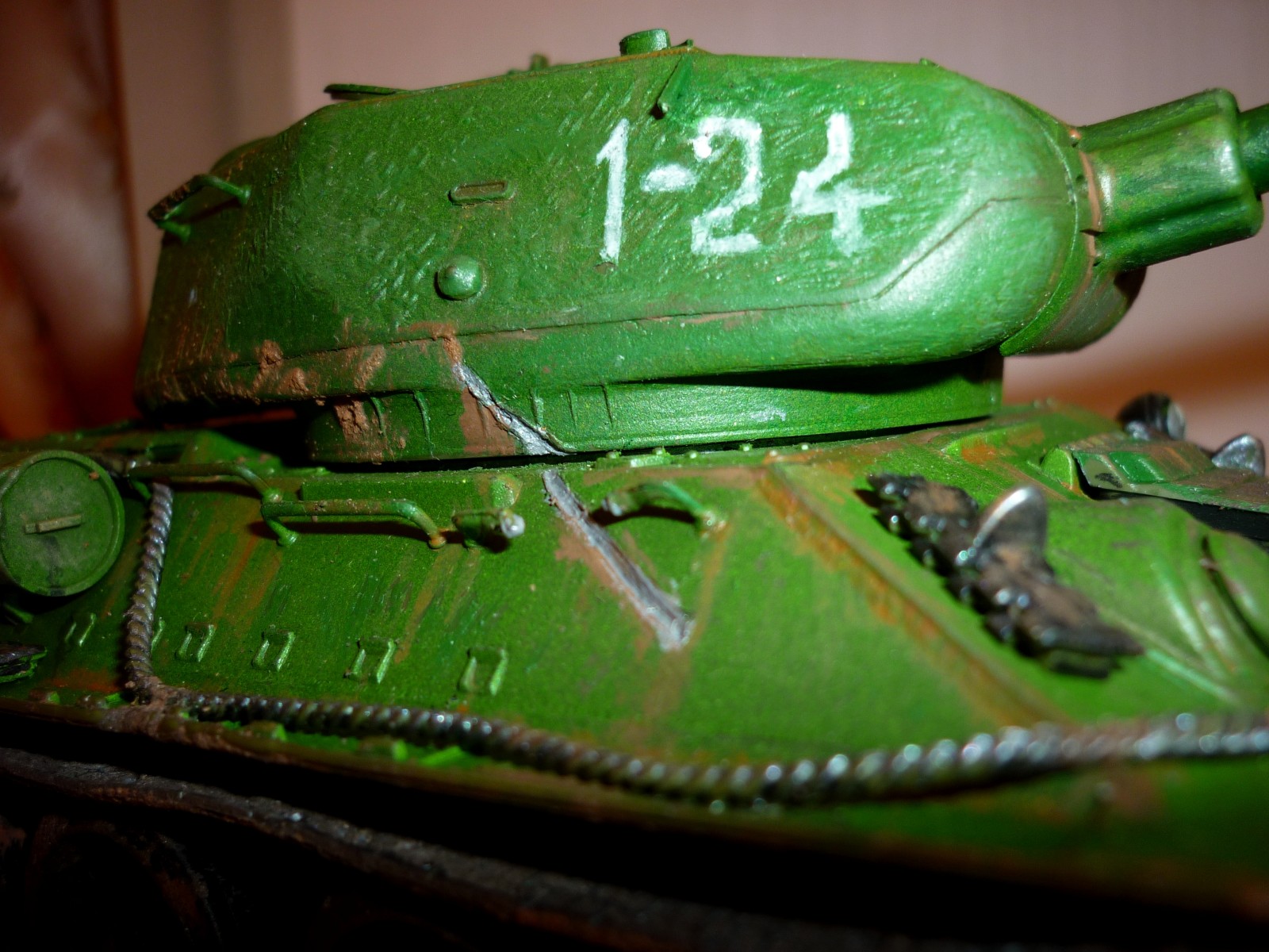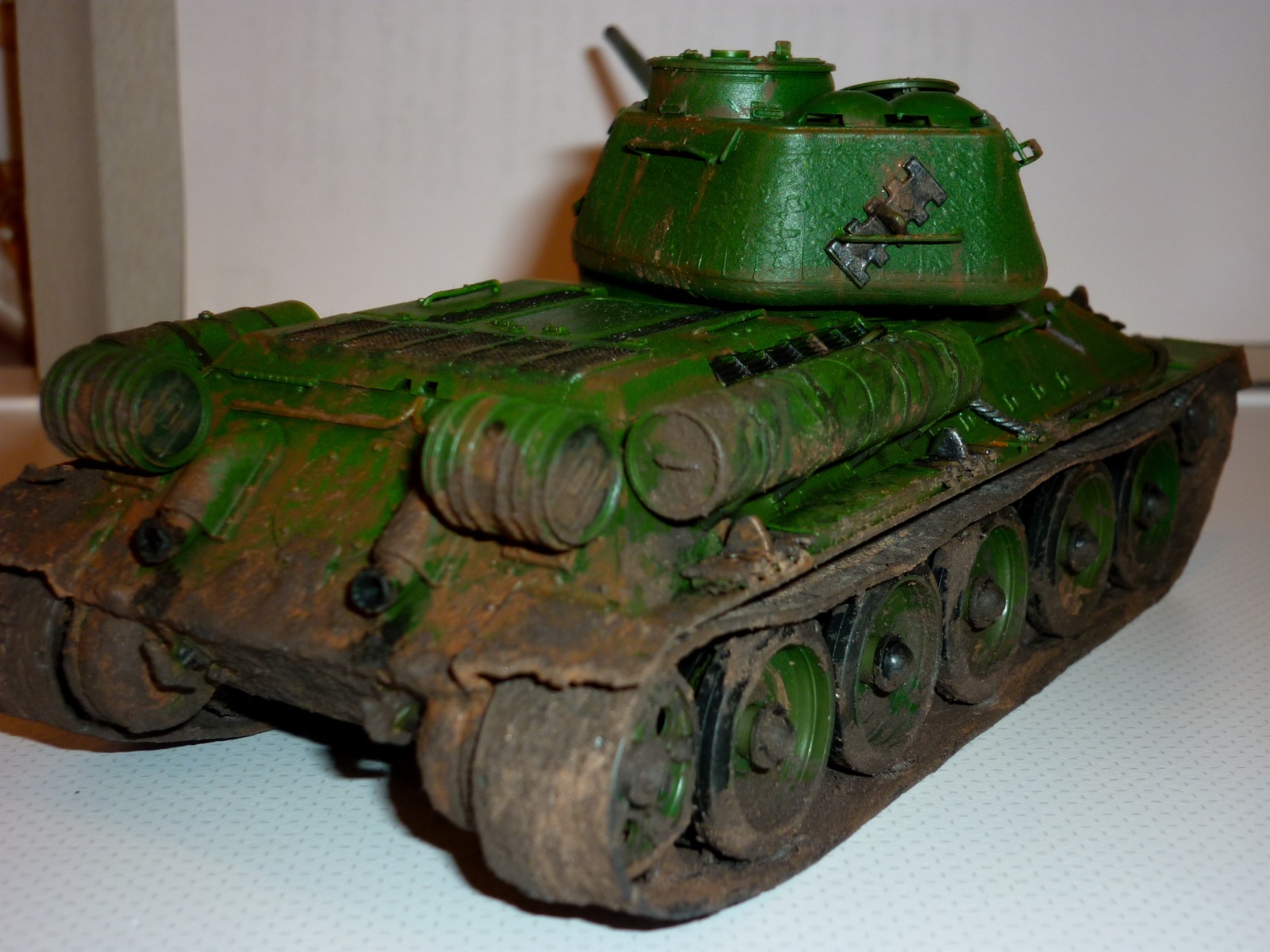 Прям как я)) Взял свой Т-34 и испортил. Траки бы упали , где крепления?Про цвет уже сказали, но и ржавчина тоже не очень, так что пока только в песок..