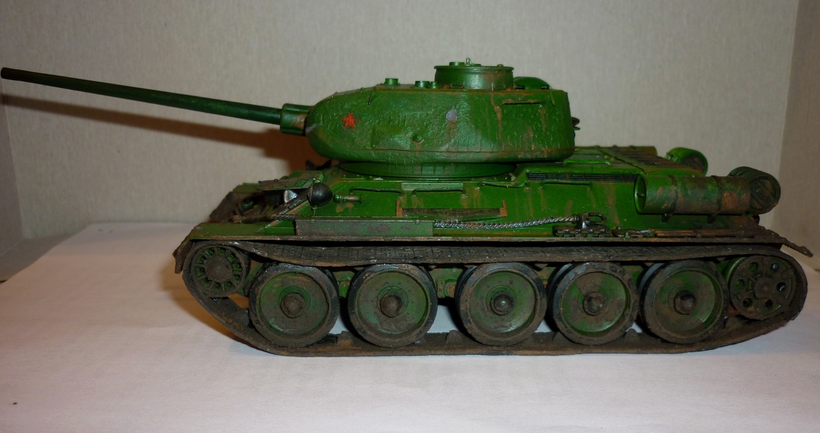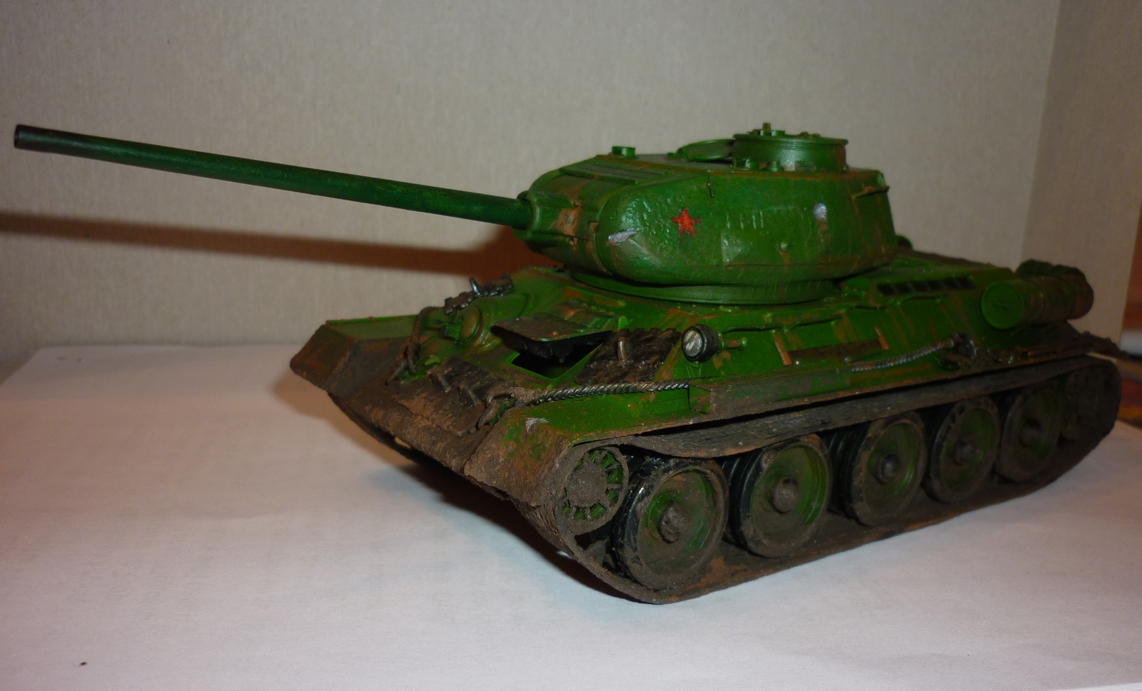 Всем доброго здравия! Хочу представить свою первую модель танка Т-34-85. Моделька стандартная, безо всяких дополнений (краска, клей).