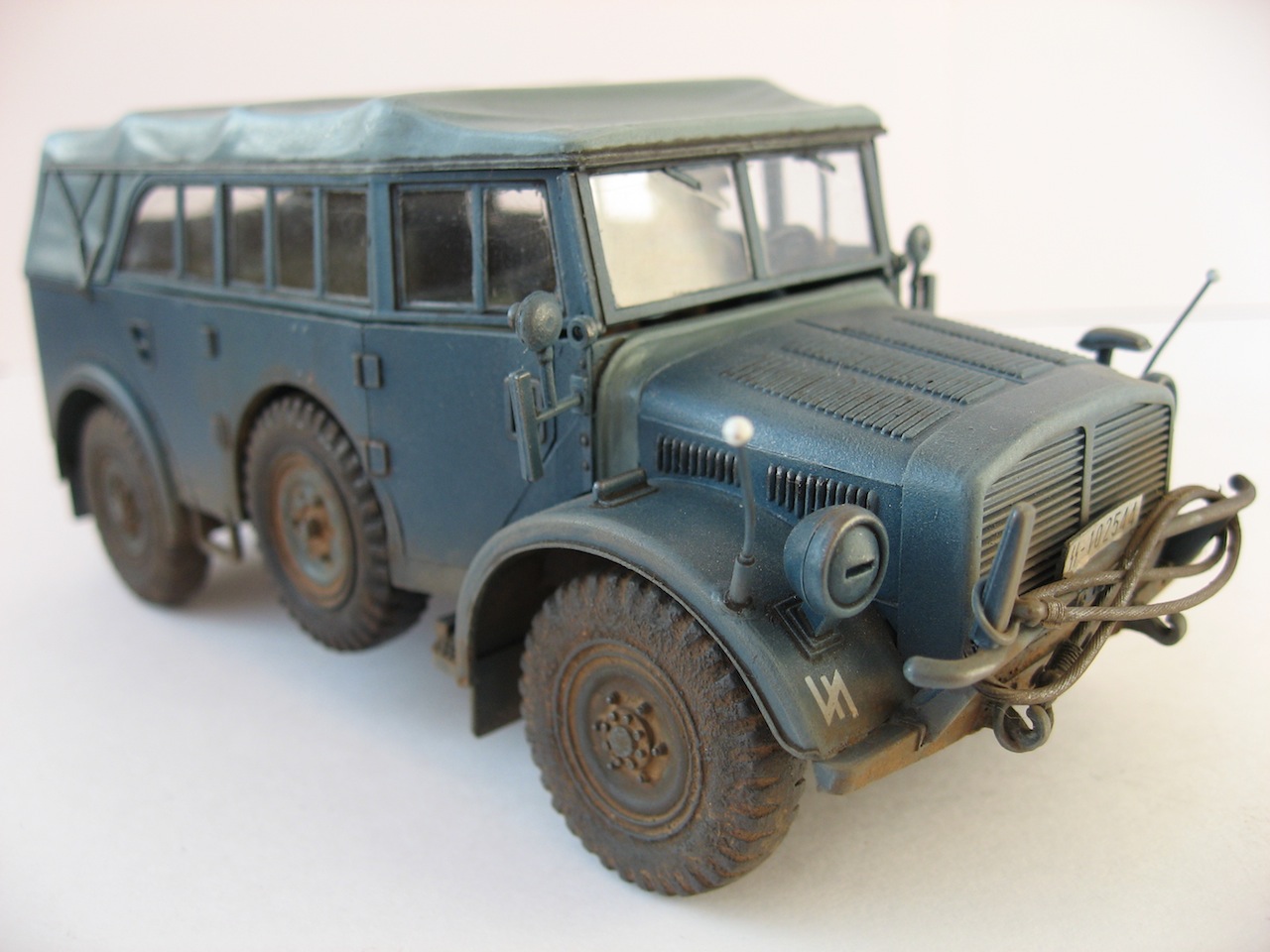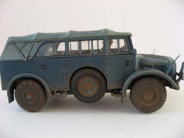 Вы прям все косяки тамии оставили, и плюс свои наделали)) Грязь/ржавчина действительно очень спорная. Тент вообще ужас, задний стоп должен быть красным, а не в цвет кузова с металлическим блеском, "усы" куда-то загнули, декали не айс - передний номер аж отваливается, много где вообще не аккуратно сделано (стекла), проводки вообще нигде нет.. это так вкратце, вообще этот набор очень древний, и соответственно его надо пилить и пилить, там кругом смещение форм, облой, и не масштабность отдельных элементов, а так же несоответствие мат.части (по задним дверям).