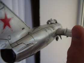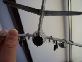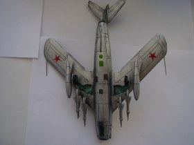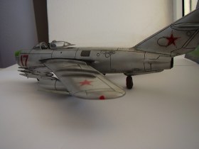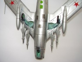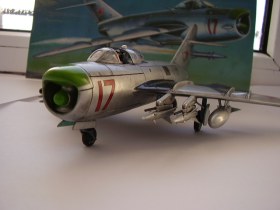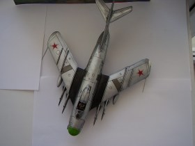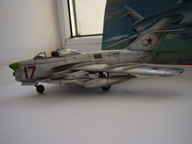 Редкий и привлекательный аппарат, однака для 48-го он не смотрится, тут и расшивка и утяжины на пилонах, РС-1У смотрятся грубовато плюс еще обтекатели АРК и МРП на МиГ-15/17 ( прямоугольник и круг на брюхе ) были всегда из оргстекла, т.е. прозрачными. вот фото