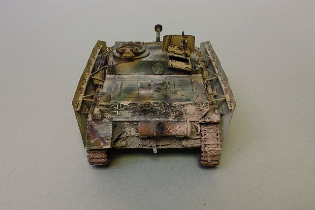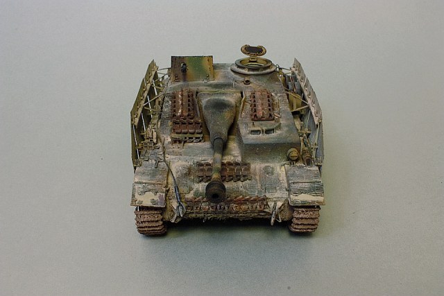 Модель является собирательным образом на основании двух фото Штугов из 914-ой бригады штурмовых орудий - старался учесть в ней общие признаки этих машин - особая бронировка рубки механика-водителя и навешанные в качестве дополнительного бронирования траки. Привязки к конкретной машине не имеет.