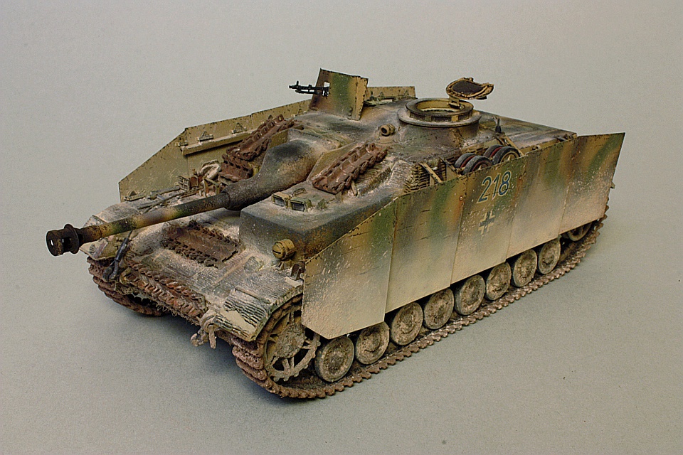 Приветствую модельное сообщество! Представляю Вам свою первую модель, которую я выкладываю в Интернет. Это немецкое штурмовое орудие Sturmgeschutz IV ранних серий выпуска. Изначально планировалась простая сборка из коробки, но в ходе изучения прототипа выяснилось, что большинство деталей совершенно не такие, как на прототипе, а некоторые и вовсе отсутствуют. Этот повлекло за собой достаточно большие доработки и приобретение различного афтермаркета. Этот Штуг стал первой моей моделью с подобными доработками. Также в этой работе впервые попробовал применить тонировку, в частности смывку, фильтры и фэйдинг, а также сколы.