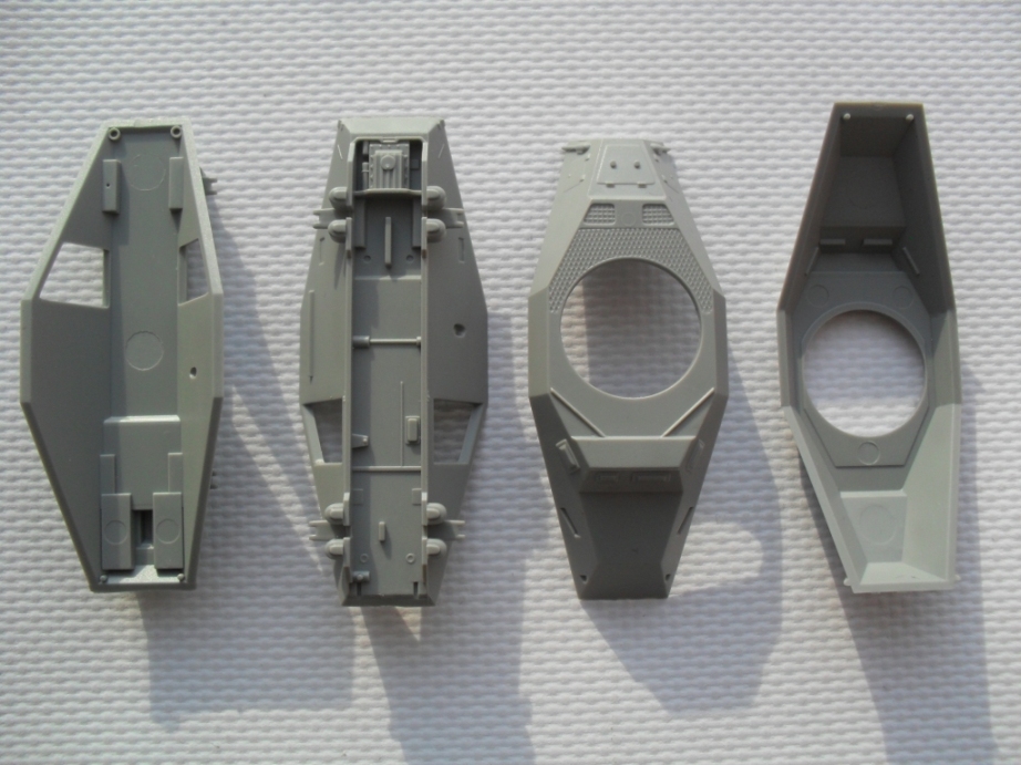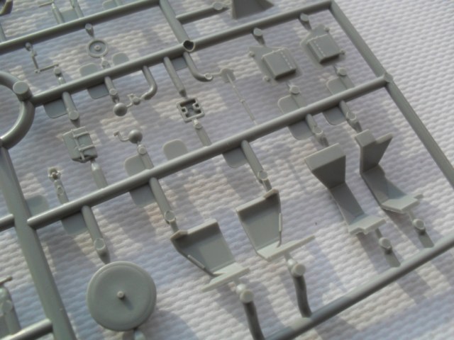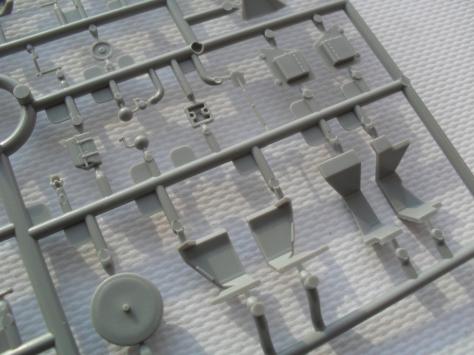 В картонной коробке размером 260*160*50 находится комплект из 100 пластиковых деталей для сборки 2 моделей. Это «два в одном» и является главной заманухой. Аналогичные киты представлены в интернет магазинах ICM цена от 185 до 250 руб. и Airfix цена 180 руб. и в них также присутствует травление по крайней мере в ICM. В набор входит два литника серого пластика (следует отметить характерное для Драгона качество отливок. Полное отсутствие облоя, непроливов и утяжин. Следы от толкателей вынесены на рамку. Да и качество самого пластика оставляет приятное впечатление). Детализированный корпус из 2 половин (итого 4 детали,+ боковые люки выполнены отдельными деталями). Стыкуемость отличная. Фототравлёные детали для защитной сетки башни, позволяют собрать варианты с закрытыми или откинутыми створками защитной сетки.