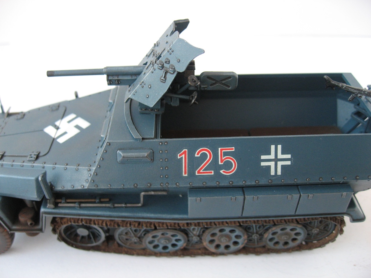 Я специально двери не плотно прижал, чтобы было видно что они открываются. С траками возился очень долго. Ни кому не советую брать Фриул на 251й, а вот Modelkasten-идеально и стоят дешевле.