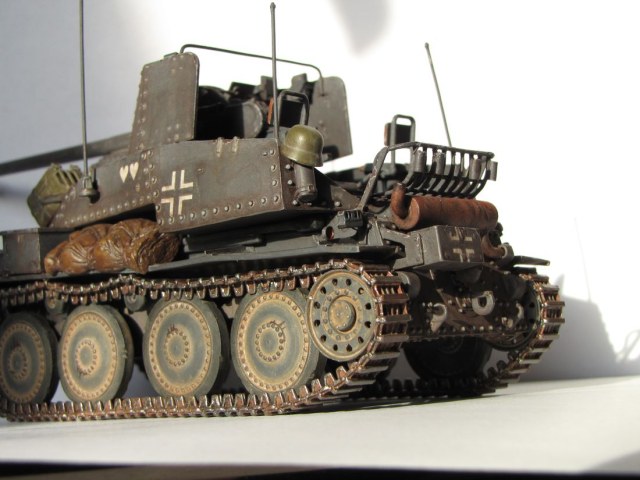 1. провис на правой гусе (фото №2) смотрится как то не реалистично что ли. На мой взгляд слишком резкий перепад. Немцы все таки народ педантичный и придерживались инструкций по натягу гуси.