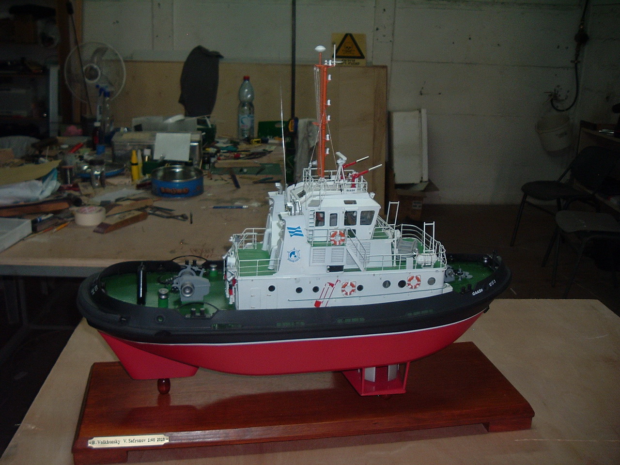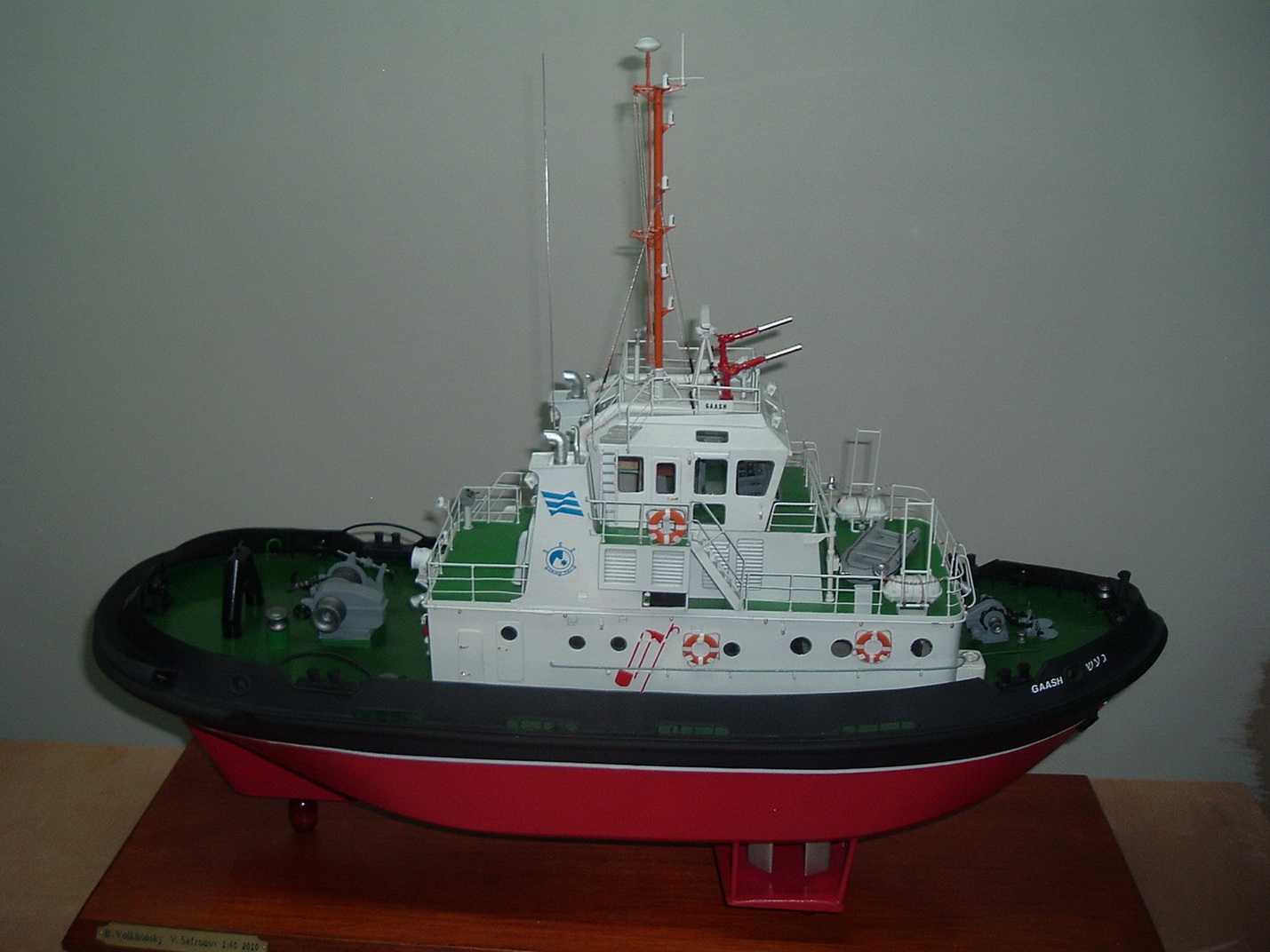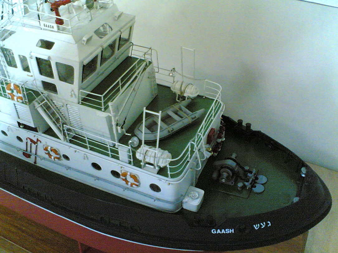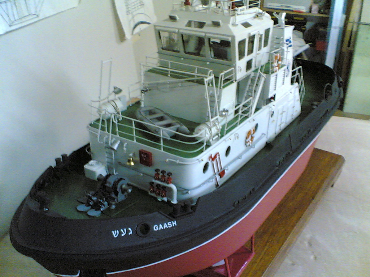 Хочу представить вам модель буксира,работающего в порту Хайфы.Модель выполнена по заводским чертежам для Морского музея.Масштаб 1/40,материалы самые разные: пластики,металл,фольгированный стелотекстолит,дерево.