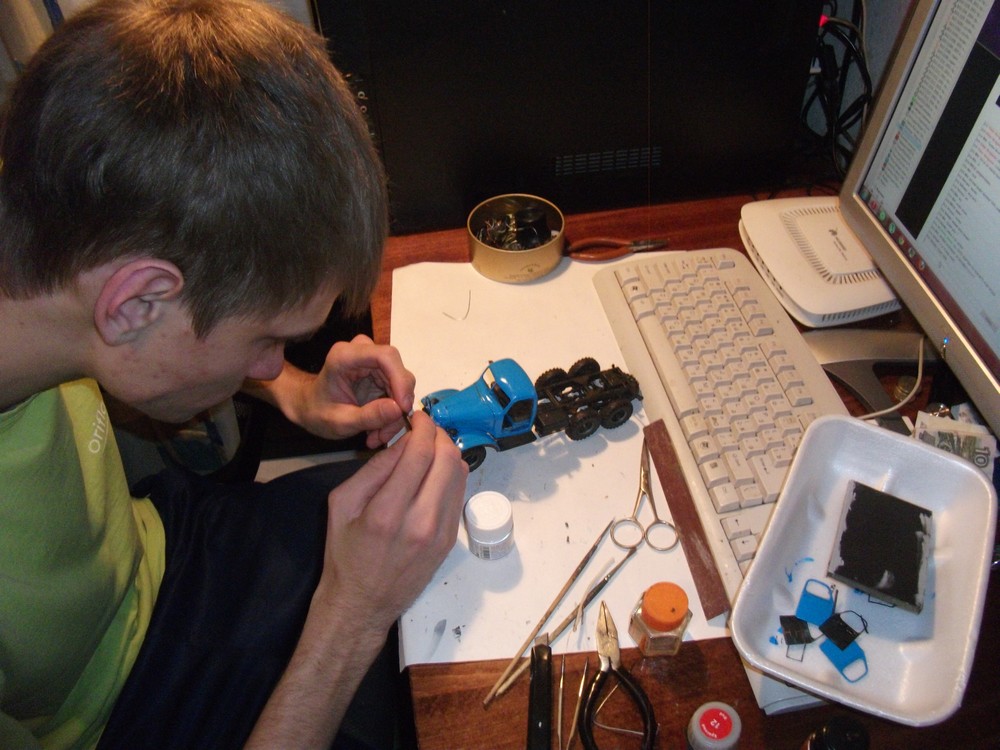 По сборке: Травление Эдуард, краска Tamiya TS-26, гидравлический подъёмник из антенны, шланги для тормозной жидкости из проволоки.