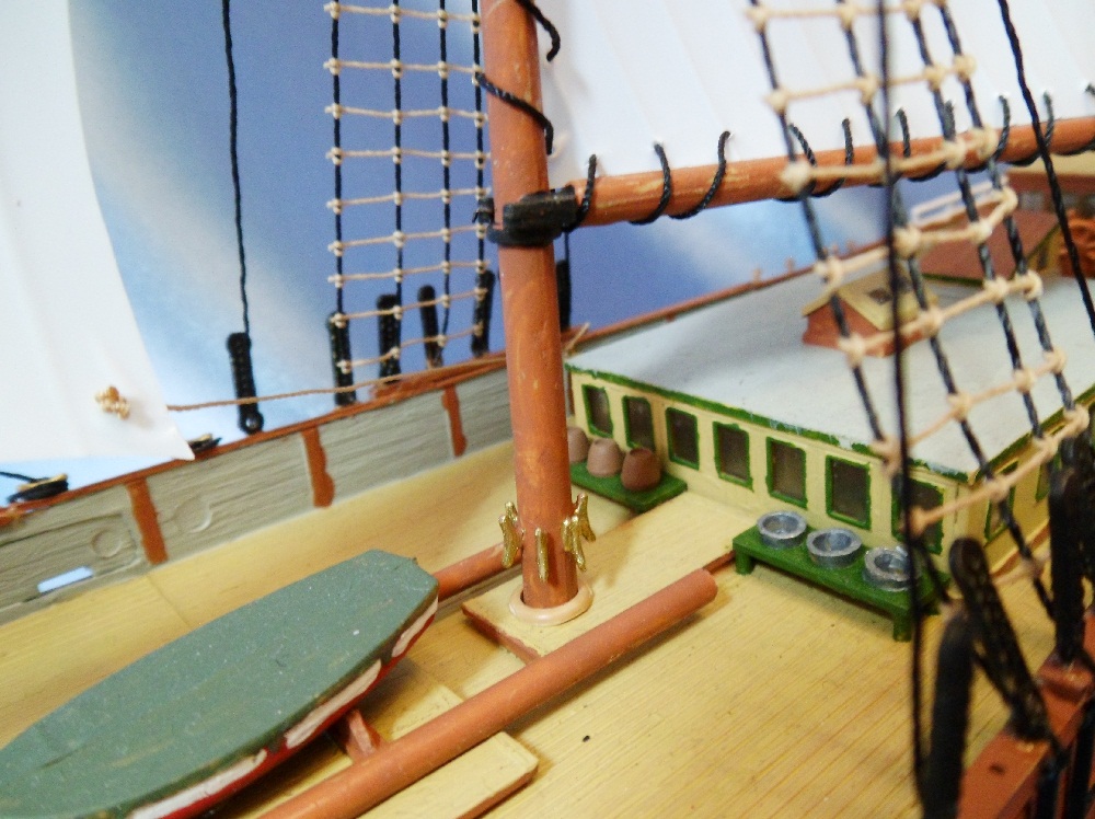 Средненько, но с душой! Главная изюминка - выбленки! И при таких "вкусных" вантах родные юферсы лучше было бы просто выкинуть - без них смотрелось бы.