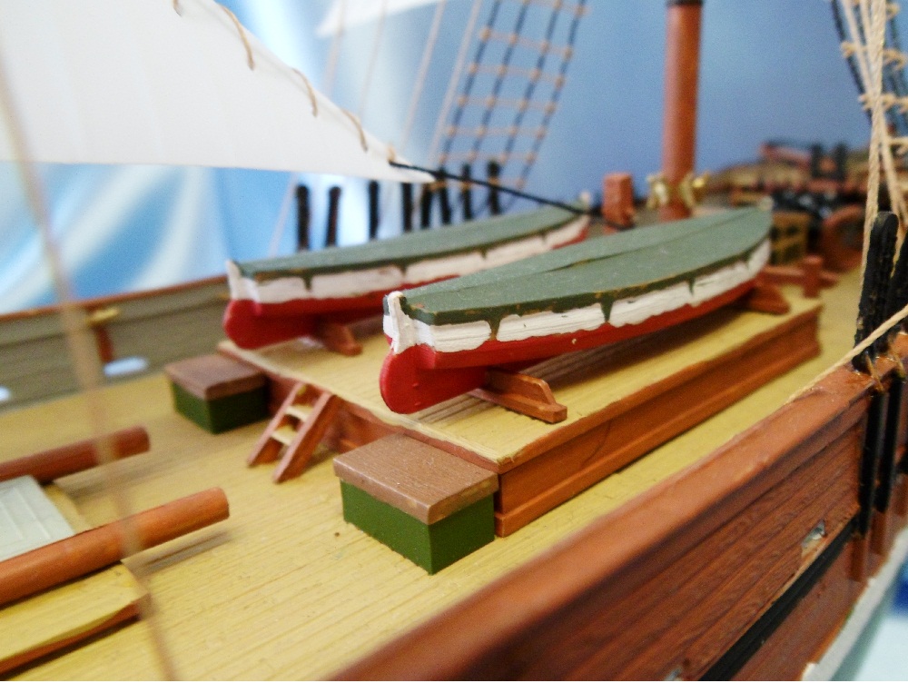 Паруса можно было и покрасить. Но если Вы любите белоснежные, это дело вкуса. А вот отверстия для их крепления проделаны слишком далеко от края.