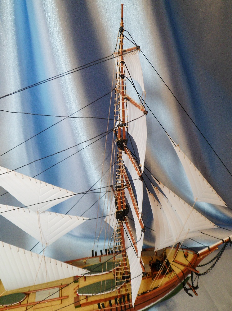 Виталий,ну что вам сказать:первое,что бросается в глаза заваленная мачта,такелаж не убедил,во первых провисы а во вторых его очень мало,я понимаю,что сборка по инструкции,но можно открыть интернет и посмотреть сколько его на самом деле.