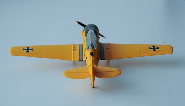 Выглядит красиво. Очень хорошо легли декали. Но вот стыки половинок фюзеляжа надо было обработать, выглядят бугорком. Можно было просто пошкрябать ножом. Кое где щели на стыках, их надо шпаклевать, но тогда пришлось бы красить фюзеляж