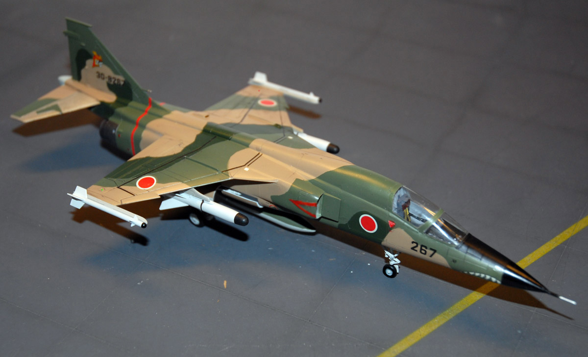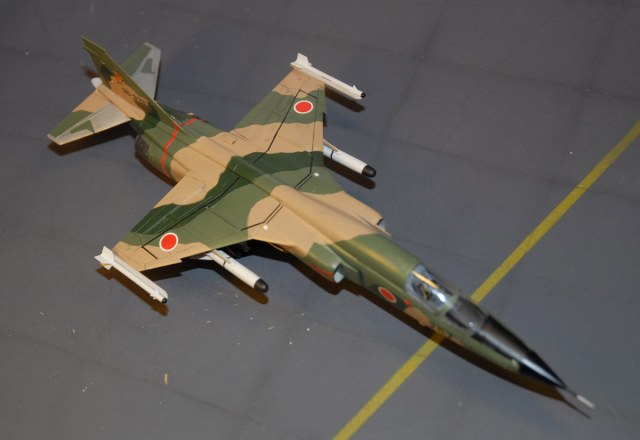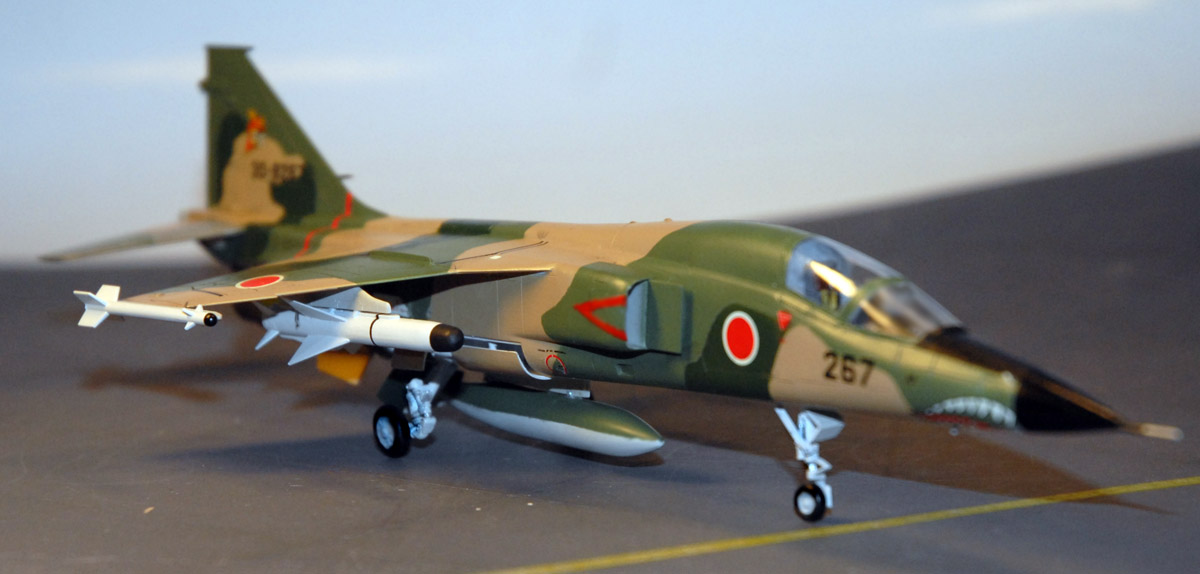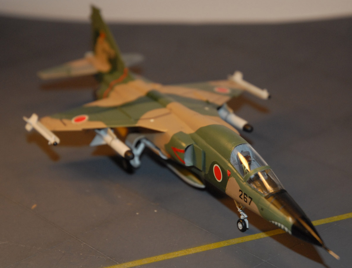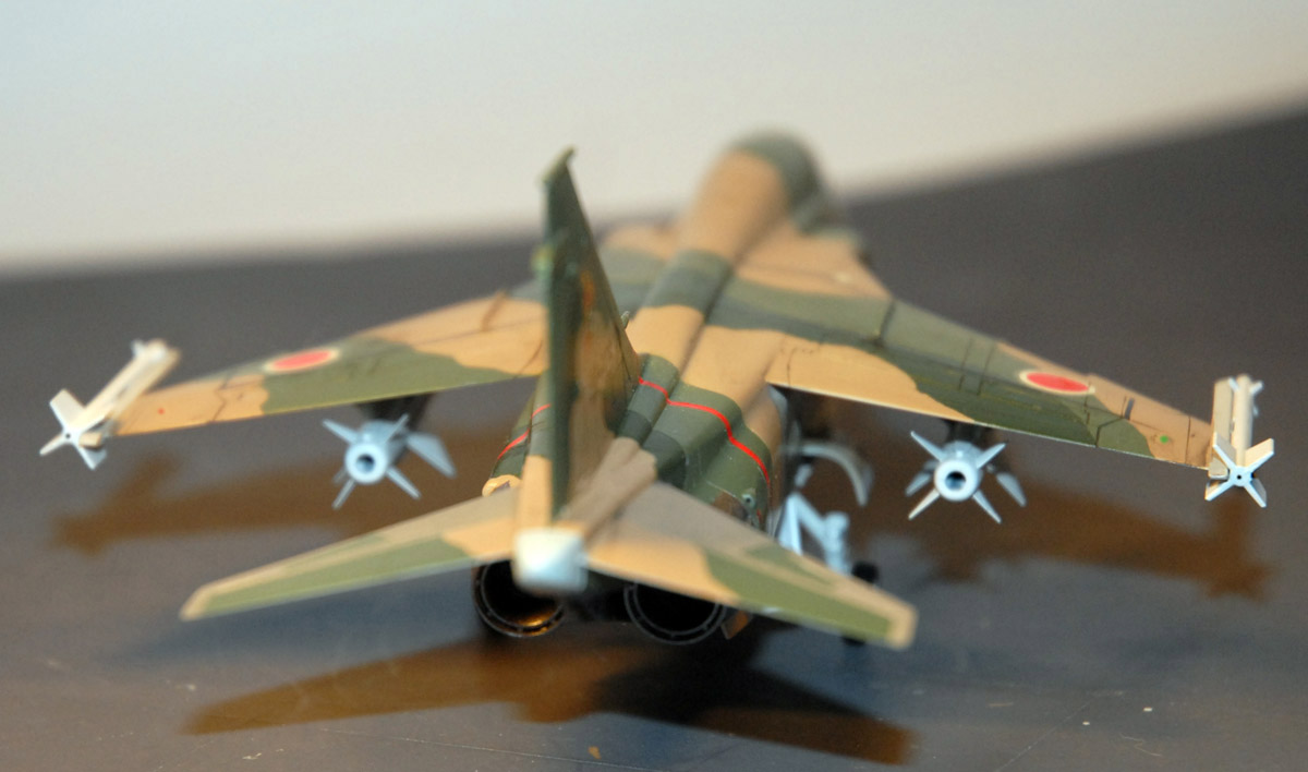 По модели: самолет собран практически из коробки. Слегка оживлена кабина, разумеется полностью перешит, ну и родное вооружение поменял на ракеты ASM-2, которые позаимствовал у Хасегавовского F-2.