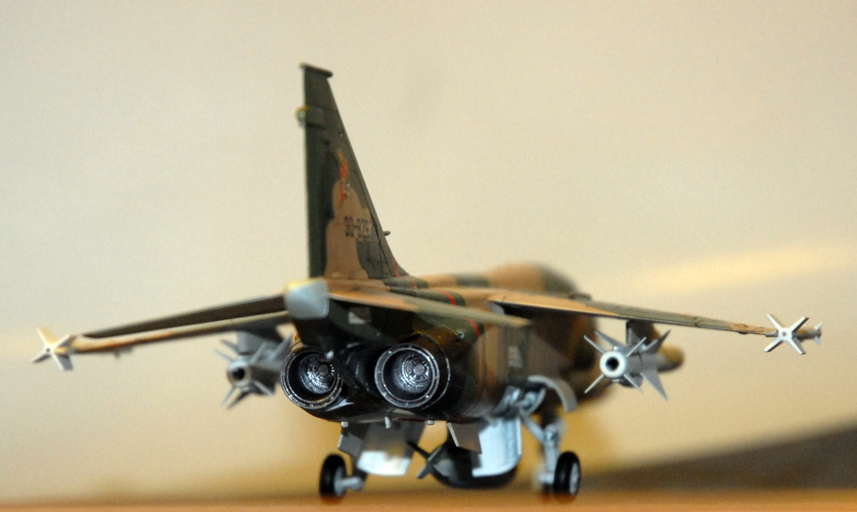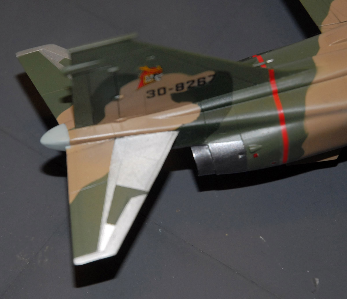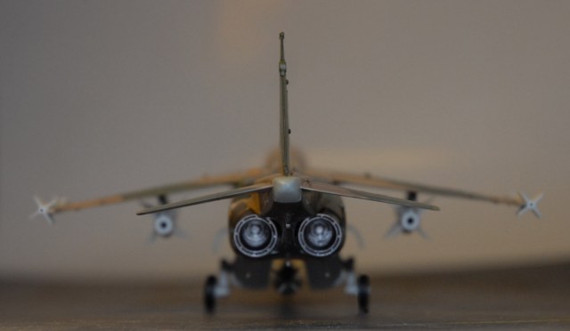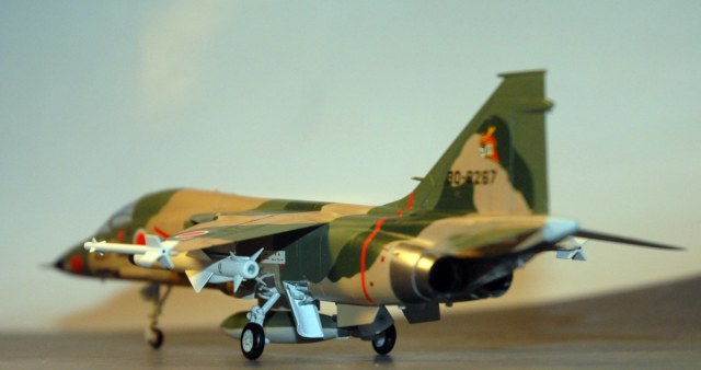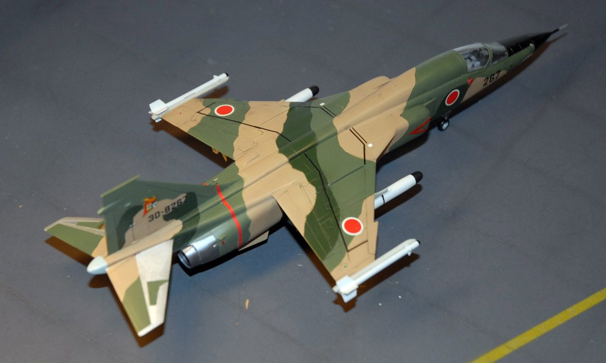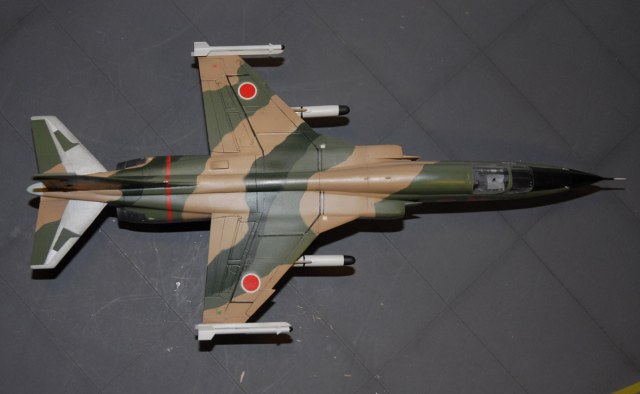 По модели: самолет собран практически из коробки. Слегка оживлена кабина, разумеется полностью перешит, ну и родное вооружение поменял на ракеты ASM-2, которые позаимствовал у Хасегавовского F-2.