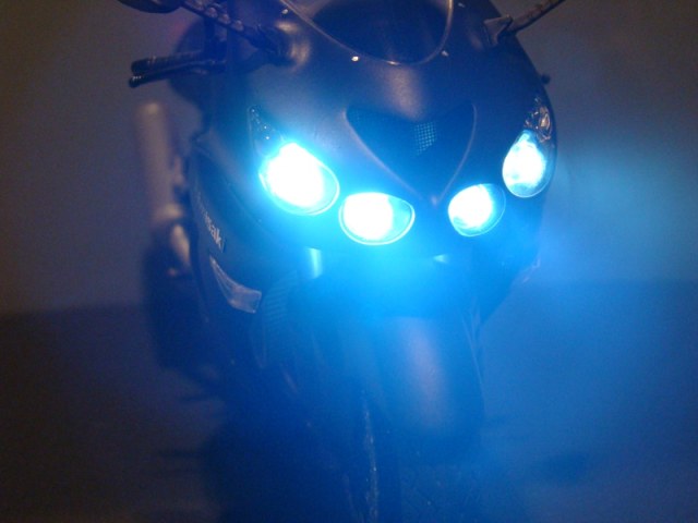 Диоды (3-х вольтовые)вставленные в просверленные отверстия в консолях фар,соединенные последовательно с источником питания и тумблером все куплено в отделе элк.товаров