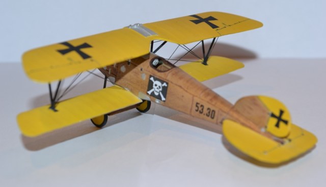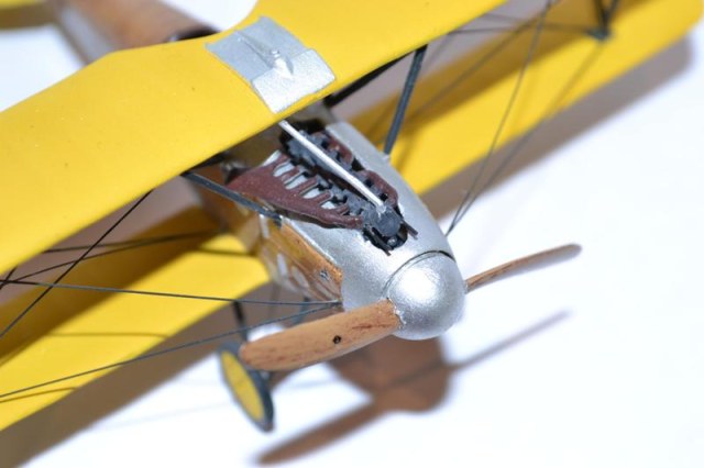Приятно было посмотреть, имитация фанеры удалась, про выхлопной коллектор уже сказали, понравилась доработка кабины, не очень понравились растяжки, ощущение тяжести может стоит поискать более тонкий материал. Серебром (как советуют)тросы не красьте, будут выглядеть белыми и вызовут замечания.Успехов.