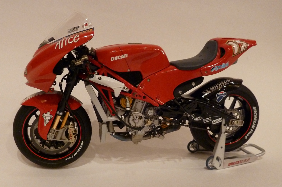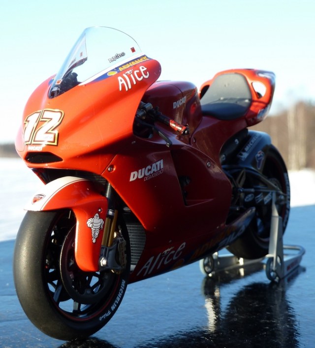 вот решил отдохнуть немного от авиации, и решил попробовать себя в МОТОстроении. сборка доставила одно удовольствие, набор очень хороший, но без шпаклевочки не обошлось. да и я сам с деками чуточку портанул (ну куда без косяков))) ). химия всякая разная, если будет интересно спрашивайте, а так не охота расписывать.