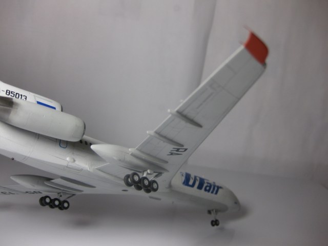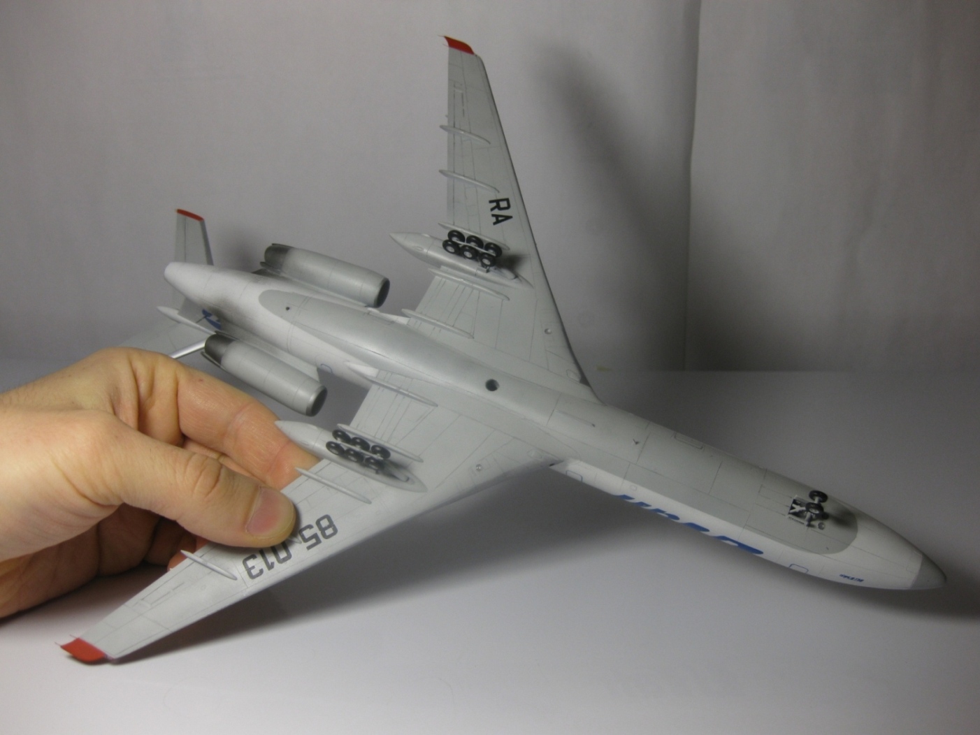 В принципе если смотреть издали, то неплохо, смотрится. При приближении немного огорчает нечеткость самих надписей, размытость по краям.Ну это понятно, через трафарет задувалось.Я 15 лет отработал на полтинниках и никогда не видел таких законцовок на плоскостях. Я собирал звездовкий туполь, там все нормально должно быть. Удачи.
