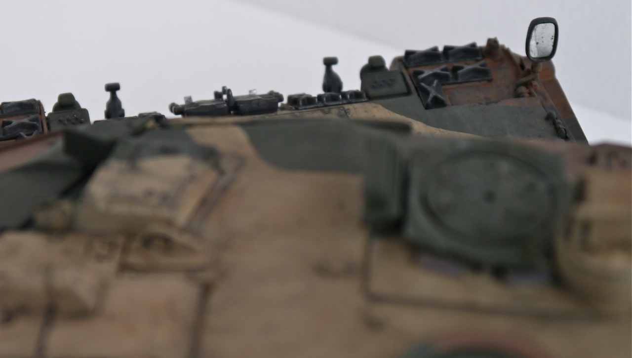 Уважаемые каропчане, на ваше обозрение модель танка Леопард 2А5 от Итальери. Без глубоких доработок. Если честно я немного разочаровался качеством, много следов толкателей, облой и стыковка деталей была не очень хорошей. Особенно у меня не получились забашенные корзины они раз 5 отваливались после клеяния...Потом встал вопрос о комуфляже так как я ещё не обзавёлся аэром представил что будет трудно рисовать камо кистью, но тем не менее посмотрев фотки Лео в инете на каропке решил рисовать камо, но отказался от стандартного натовского камо. Сначала хотел сделать камо по схеме самого нового Леопарда 2А7с городским камо, но оставил это на будущее, потом в инете наткнулся на интересное камо -"пустынно-натовский" . Но не знаю был ли это немецкий танк.