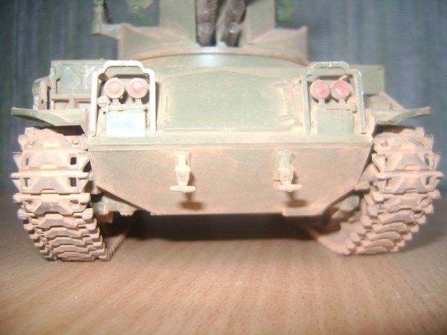Фото отвратительные, гусеницы надеты задом наперед. Красные фары?