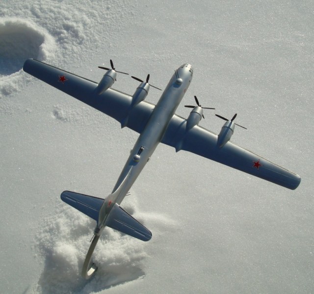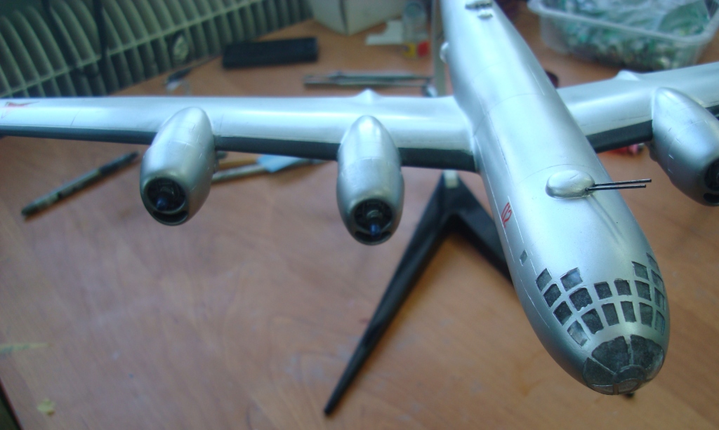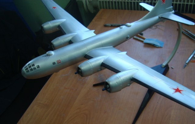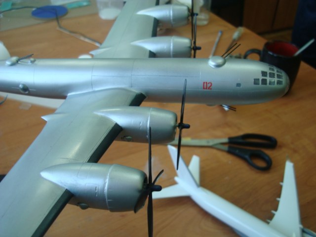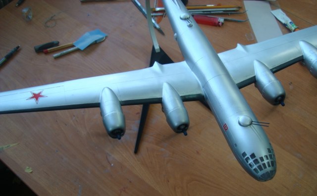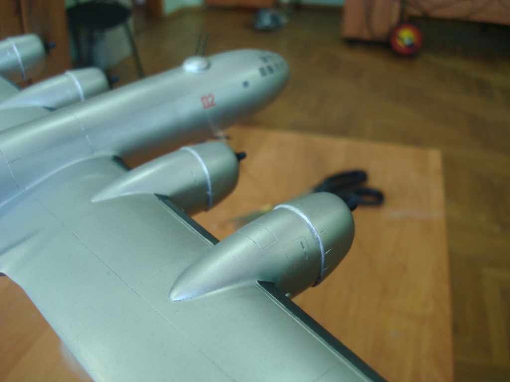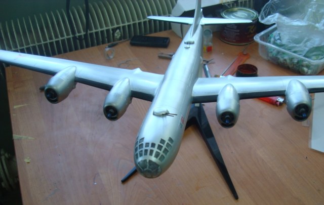 Представляю вашему вниманию ту-4,данный самолет попал ко мне в руки очень давно в склееном состоянии,и так как в запасе у меня был еще не собраный я решил на нём попробовать сделать работающие двигатели,фюзеляж был склеен "очень хорошо" и разобрать нормально его не получилось(по фото видно)...