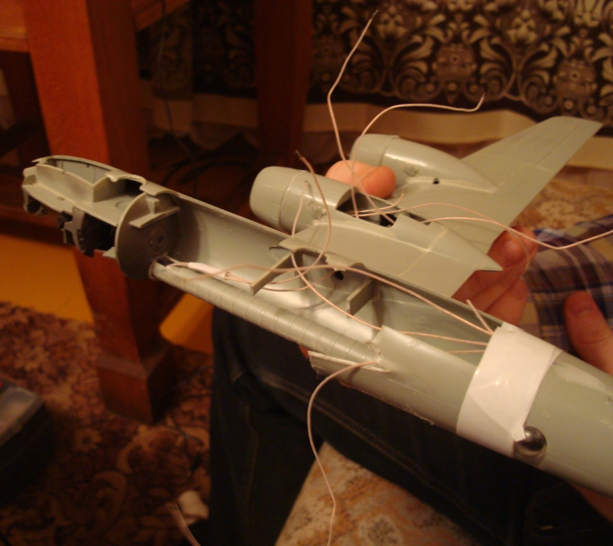 напаял схему,купил от телефонов микродвигатели вроде работает,светодиоды в кабинах,бано делать не стал так как крыло реально разобрать не получилось,в принципе результатом я доволен,но покраской нет,косяков много,недокрасил киль,да и сборкой тоже,лучше делать с нуля чем исправлять,да и в будущем я другие двигатели буду использовать...