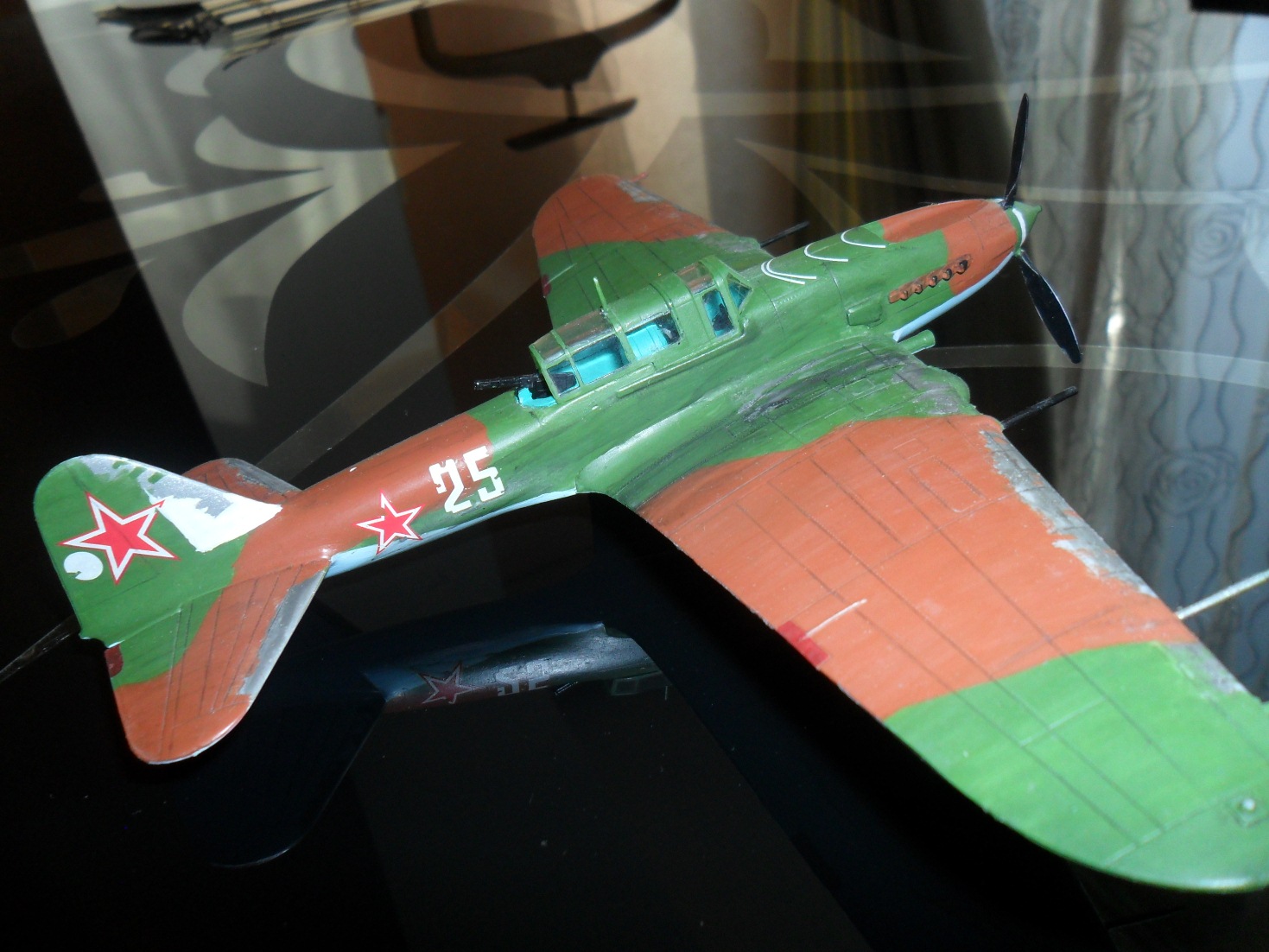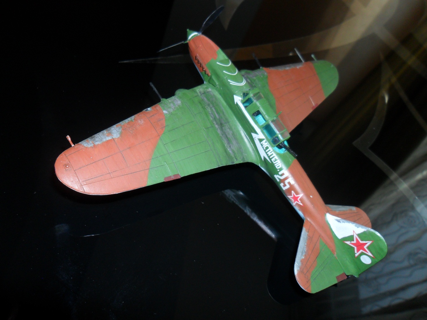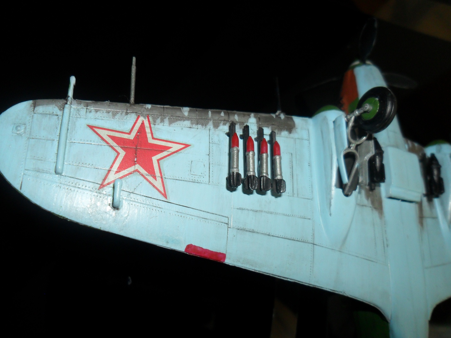 Но, как уже говорилось выше, цвет кабины совсем не тот, облезлая кромка, это конечно подозрительно, но вдруг он разбомбил состав с соляной кислотой и пролетел сквозь облако от взрыва))) дело в другом, у Ил-2 крылья были деревянные...