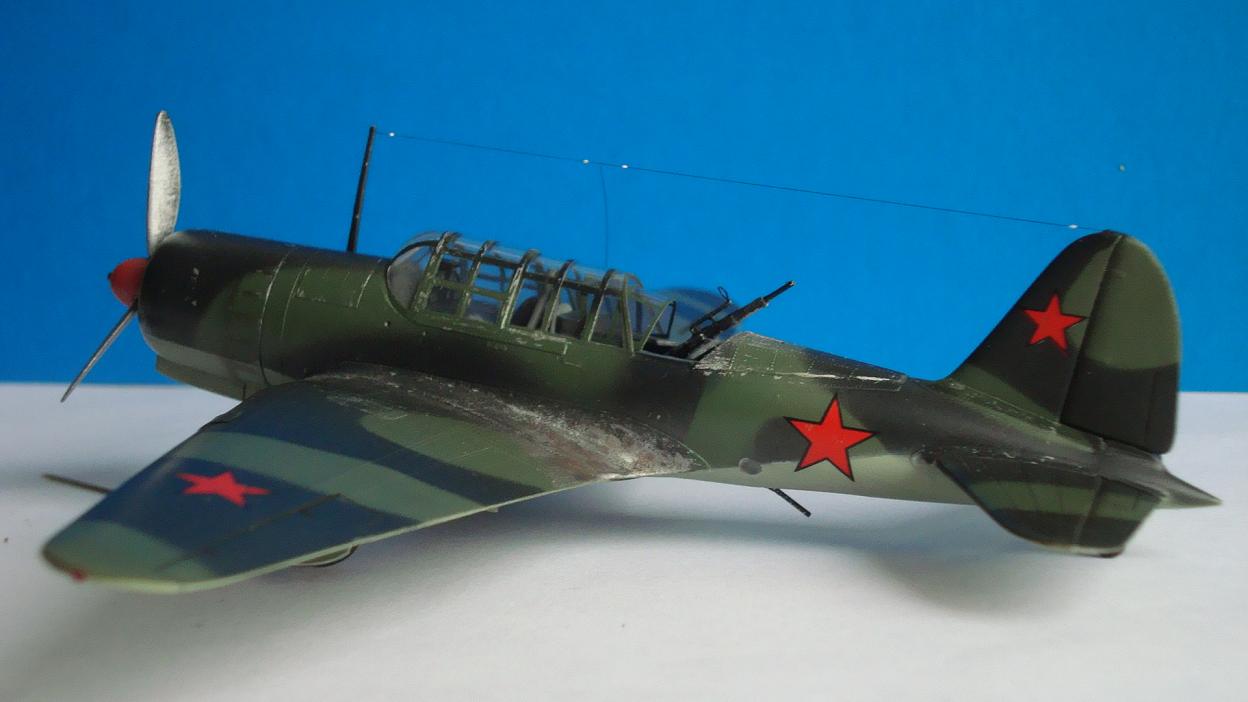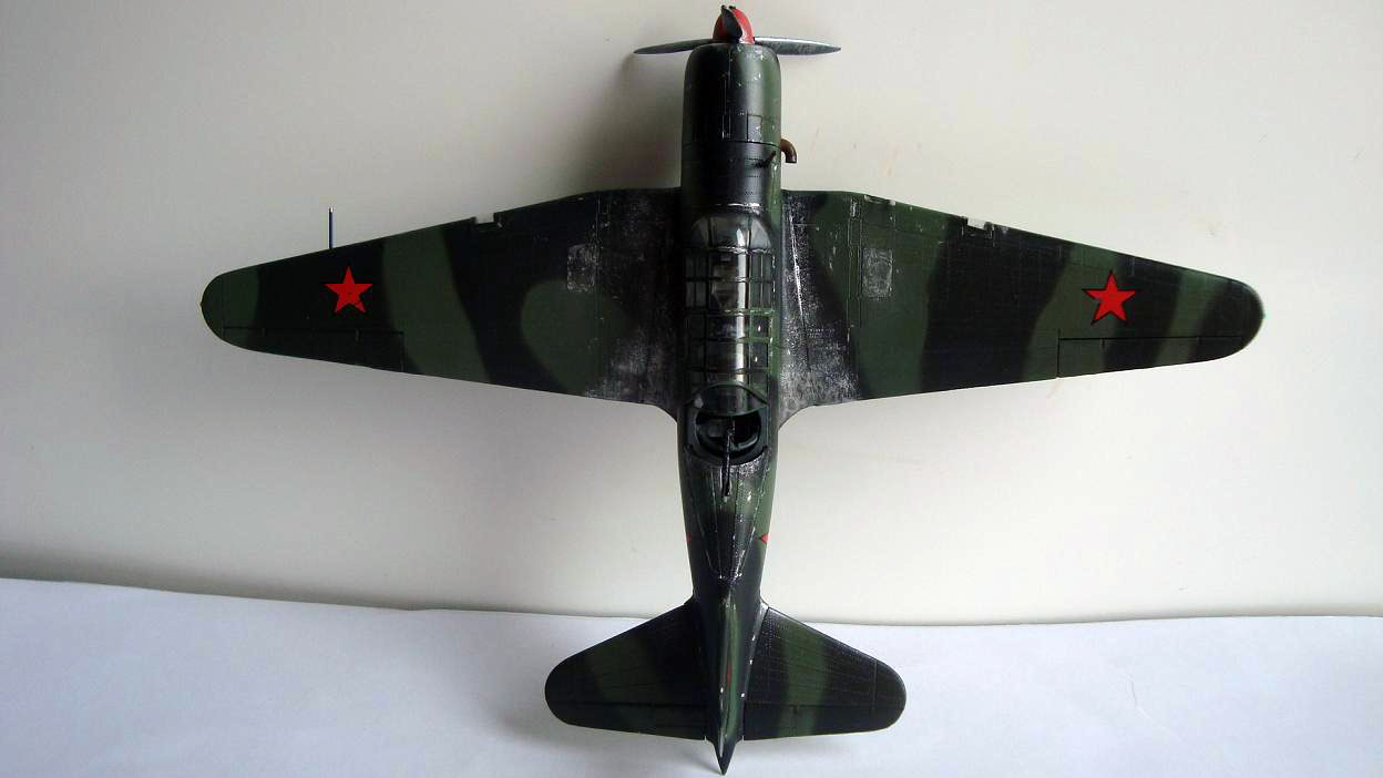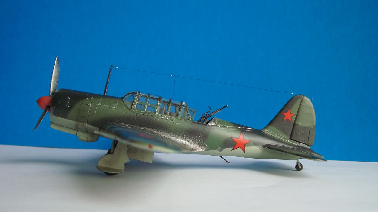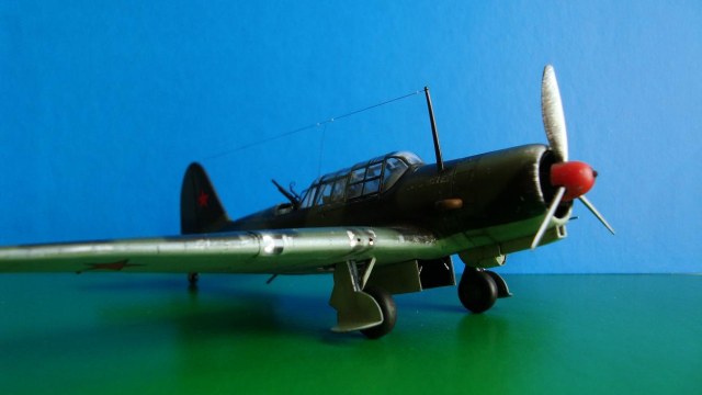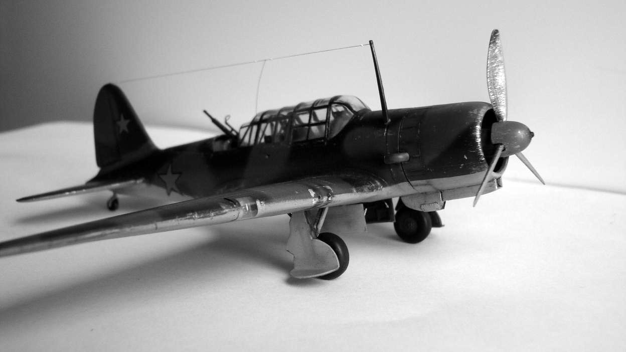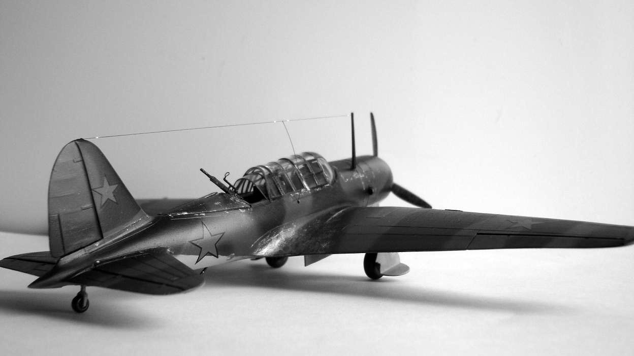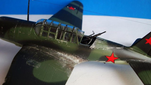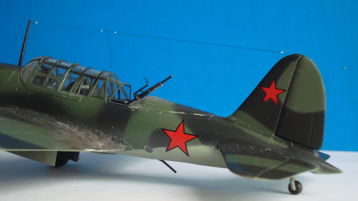 Эта, на вид немного несуразная машина, одна из первых встретила войну и использовалась довольно широкоформатно: и как бомбардировщик и как штурмовик и как корректировщик. Данная модель представлена как вариант бомбардировщика с модифицированной турелью. Впоследствии, полноценной замене Су-2 стал Ил-2, который летал до самой Победы (если поглядеть на Су-2 сверху, - можно даже узнать знакомые линии крыльев, оперения. Не удивительно, что фрицы часто путали эти аппараты).